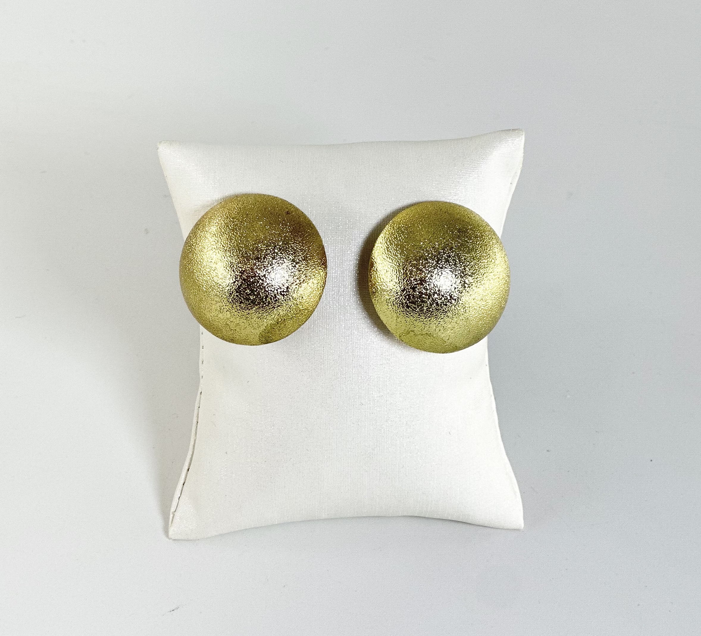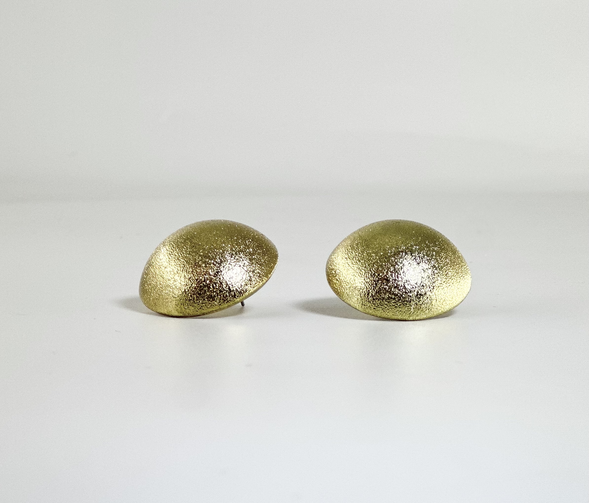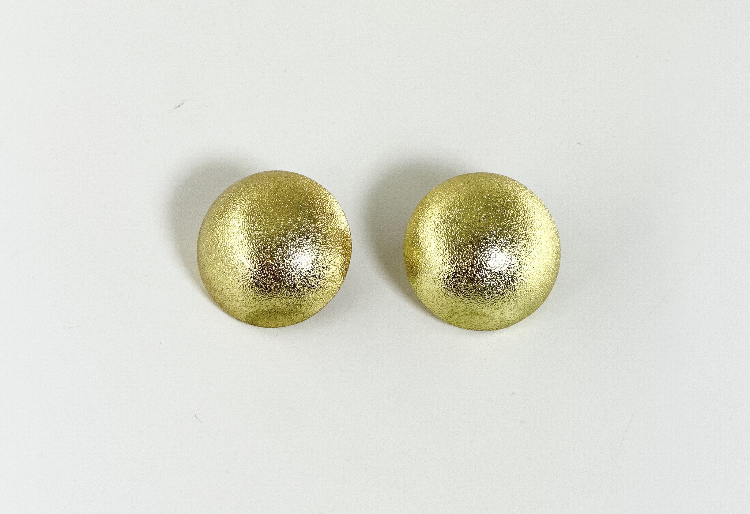 Πρόκειται για στρογγυλά, ατσάλινα σκουλαρίκια σε χρυσή απόχρωση, με σατινέ – ματ υφή που χαρίζει μια διακριτική λάμψη.