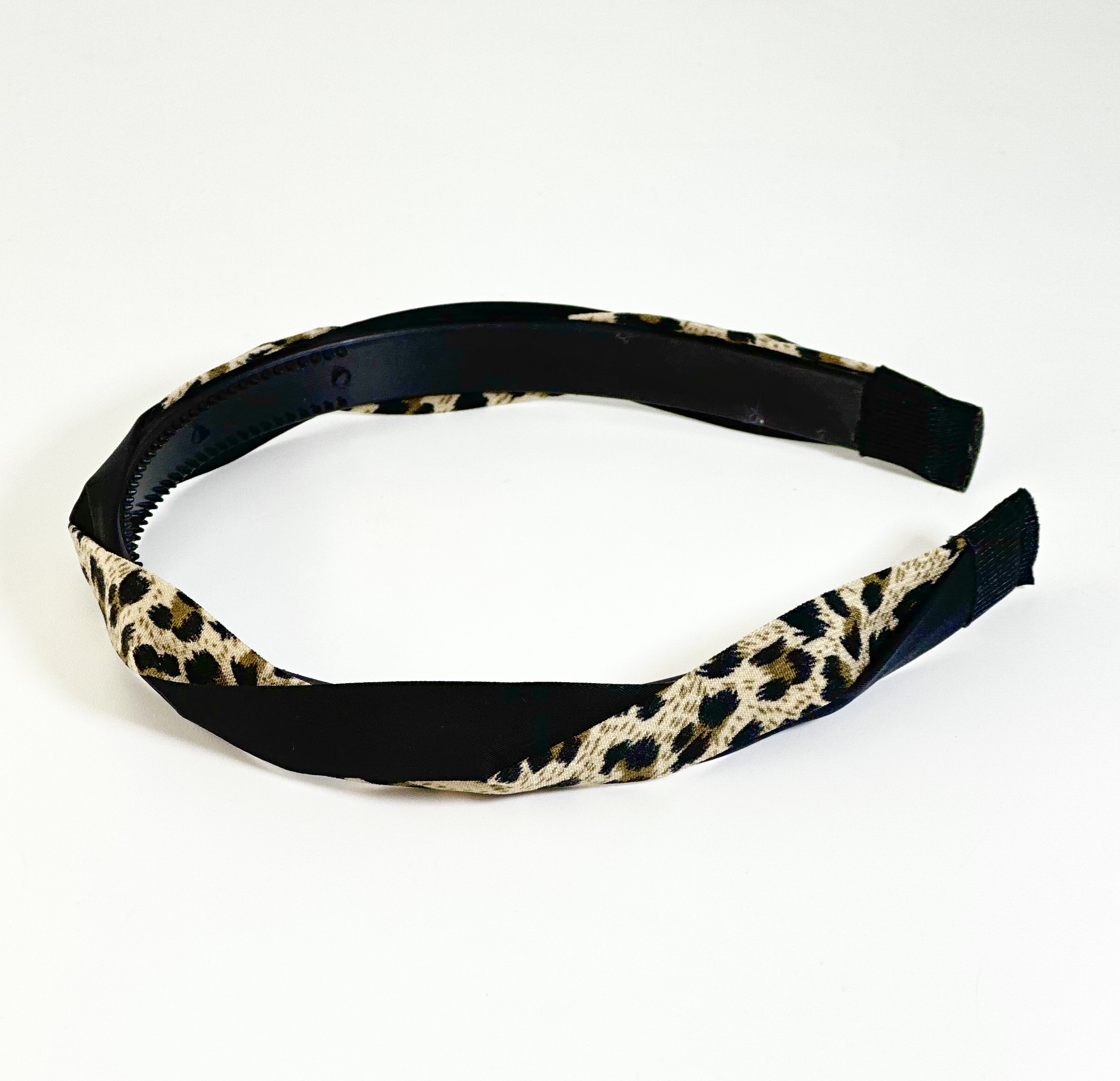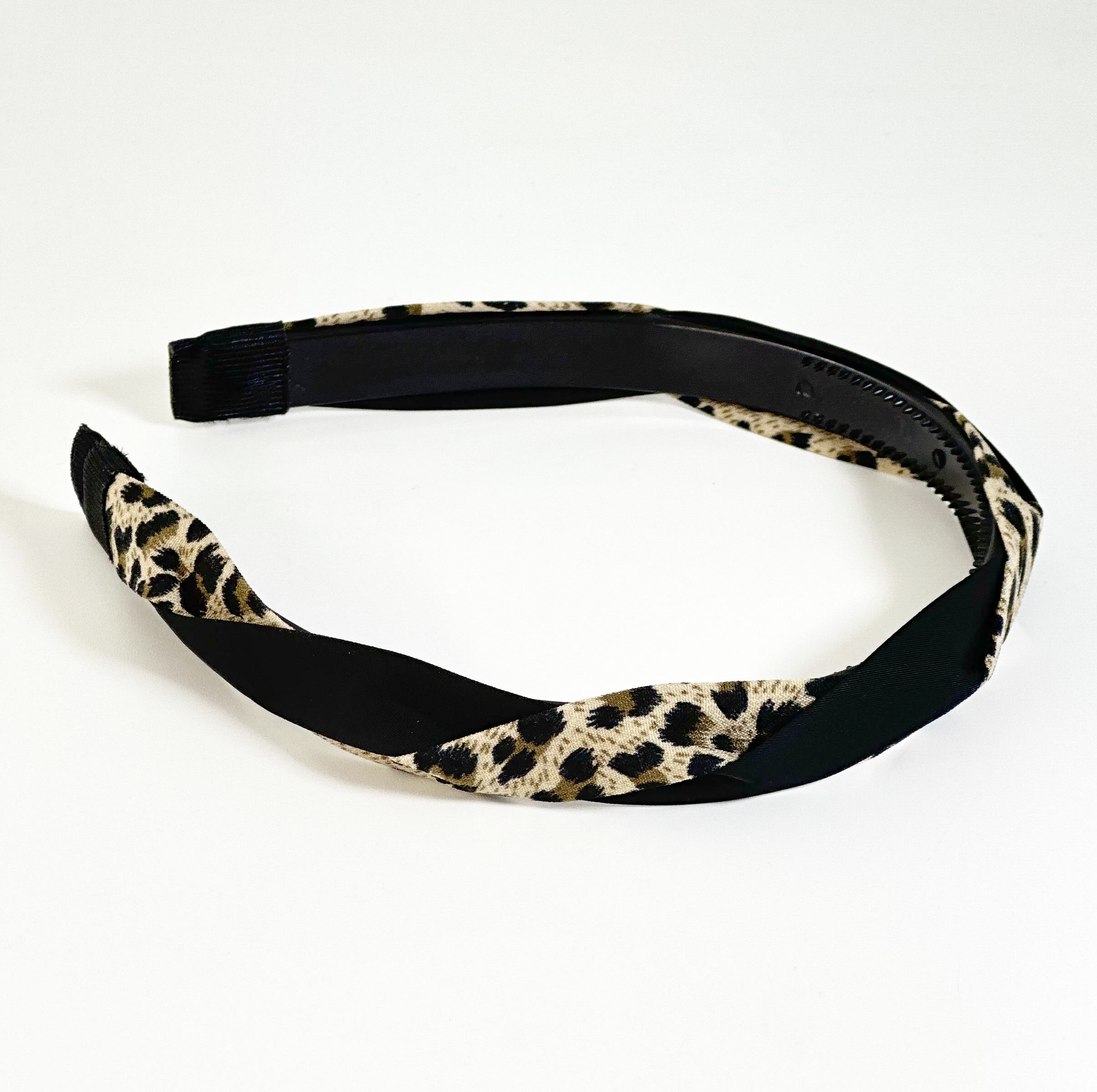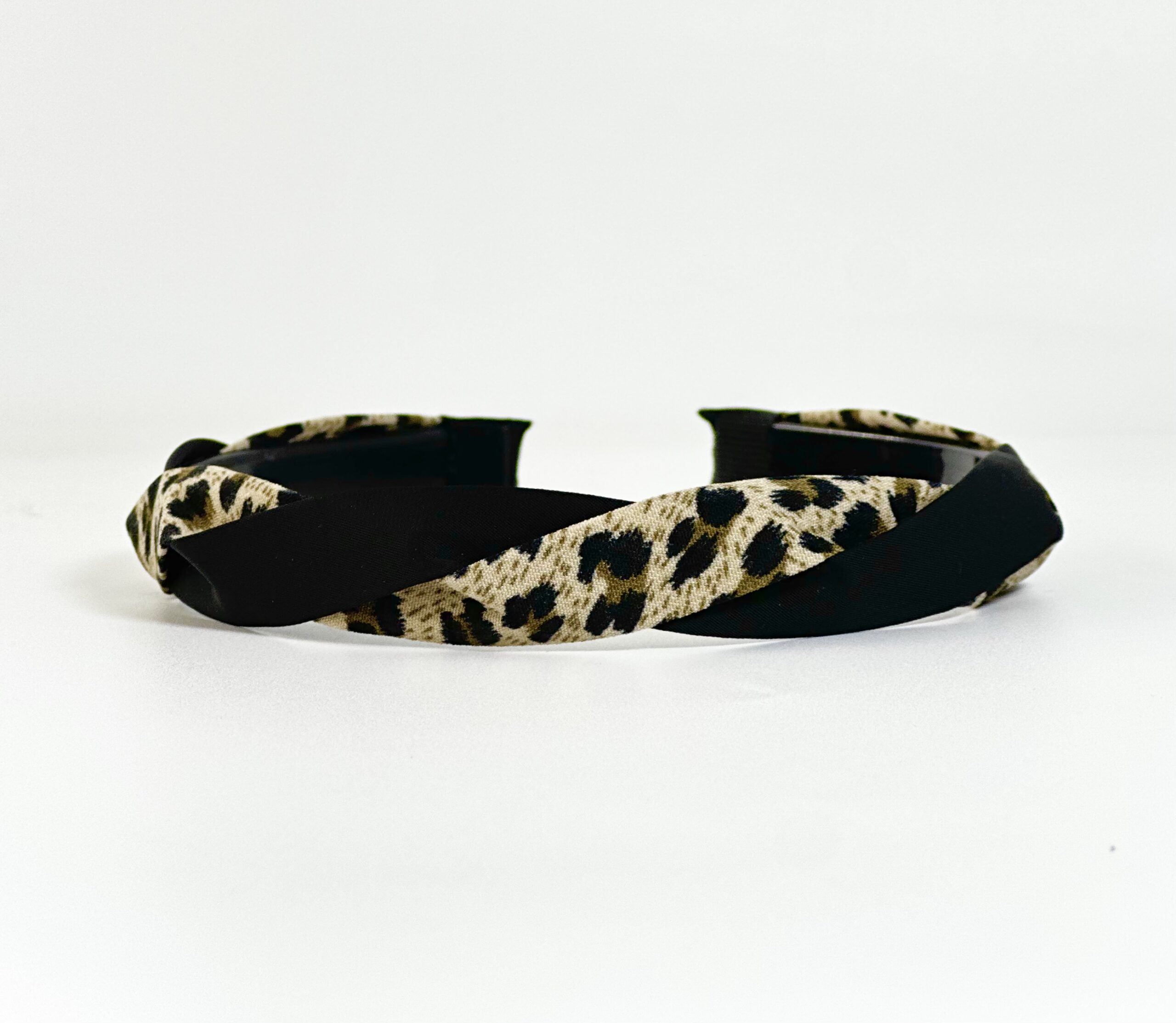 Λεοπάρ μαύρη στέκα, καλυμμένη με βελούδο σε αποχρώσεις μπεζ, καφέ και μαύρου.