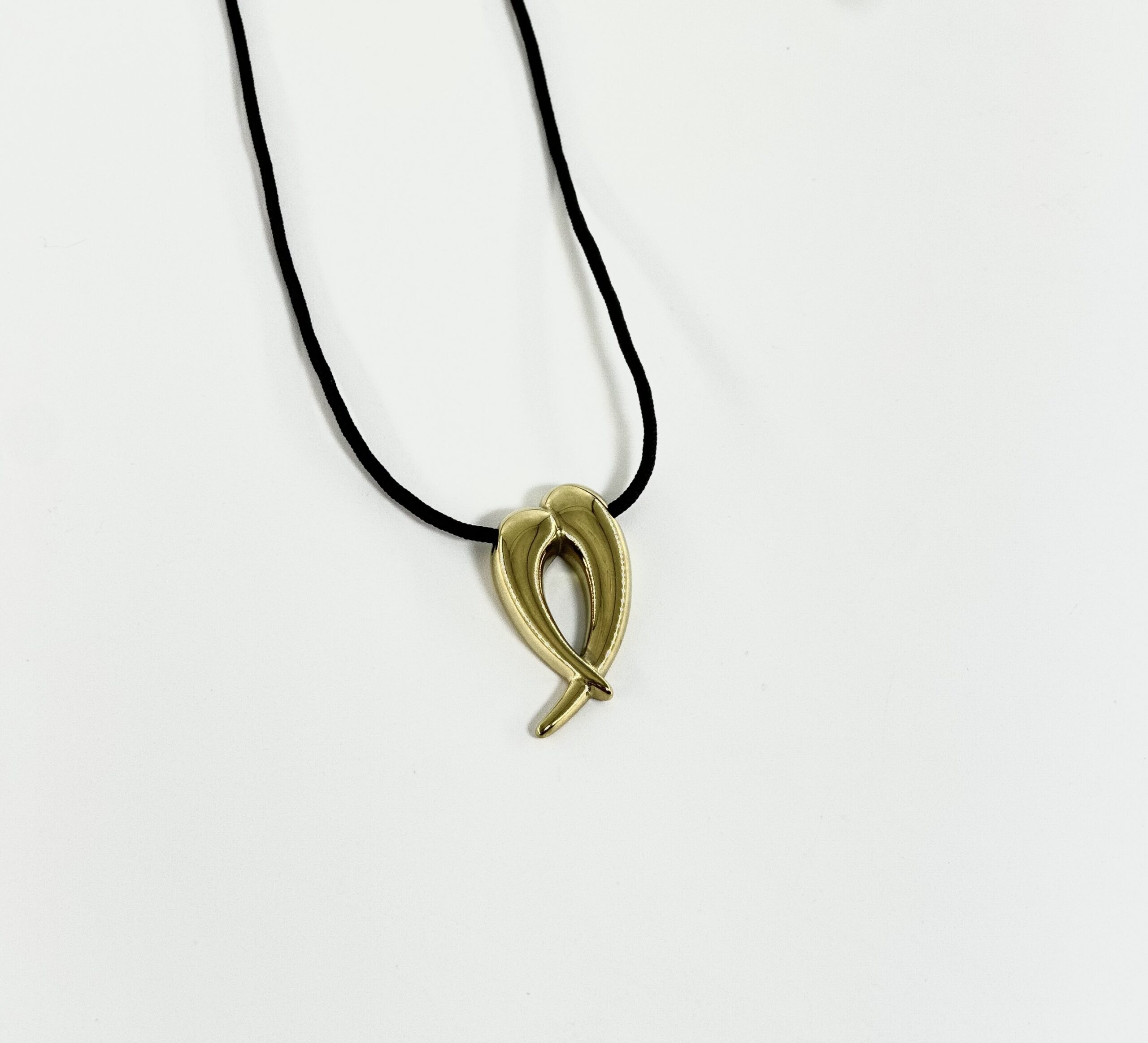 Απόχρωση: Χρυσή αφηρημένη και ακανόνιστη καρδιά που κρέμεται από μαύρο κορδόνι για πιο casual εμφανίσεις