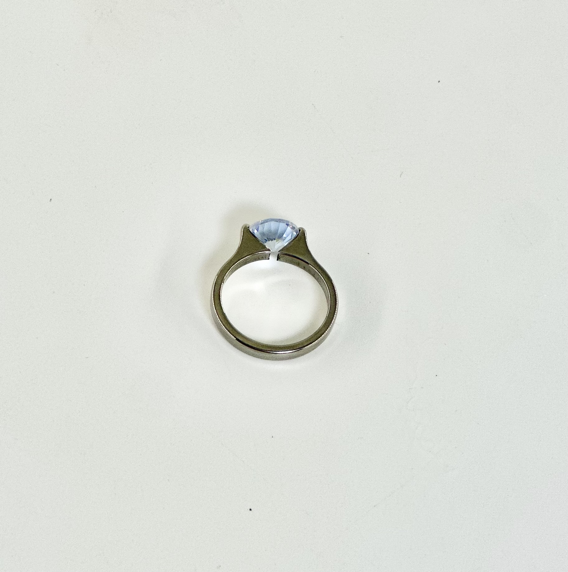 H πέτρα συγκρατείται με τετράγωνο στήριγμα που αναδεικνύει τη λάμψη και το καθαρό της κόψιμο.