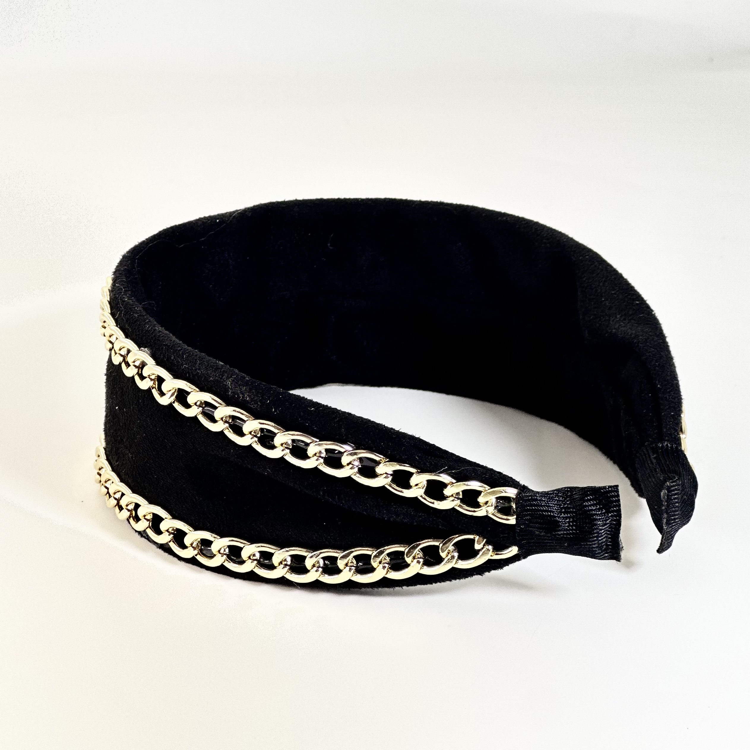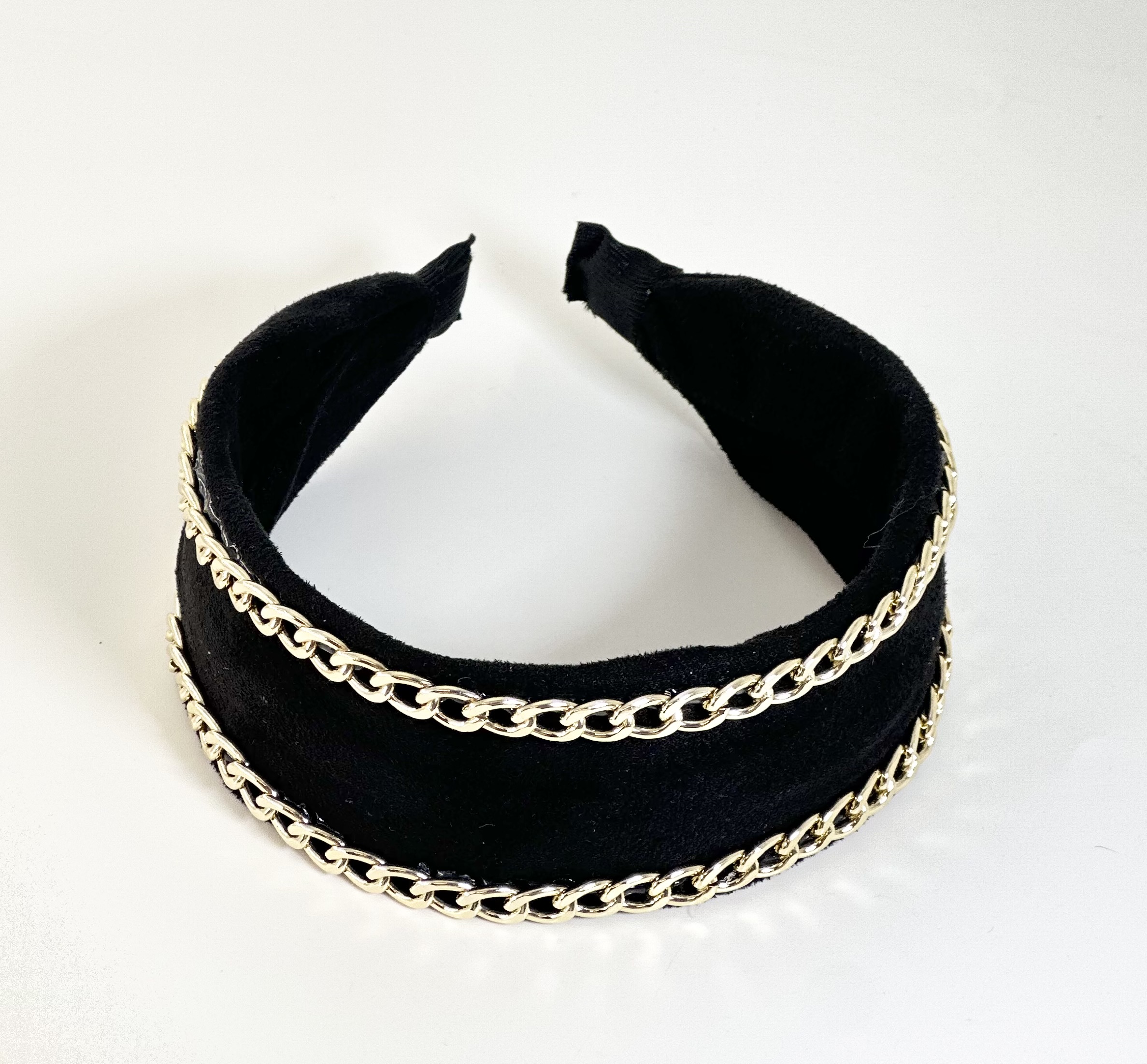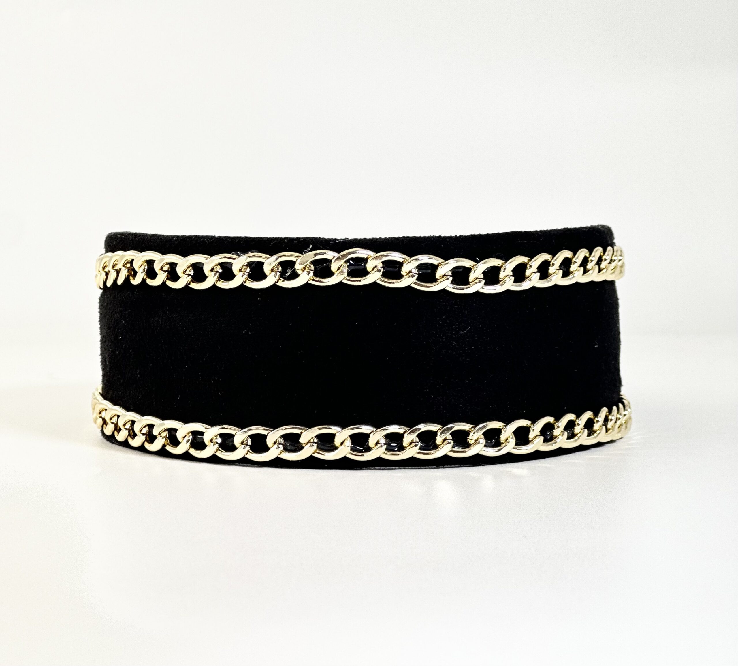 Φαρδιά μαύρη στέκα, καλυμμένη με βελούδο και κατά μήκος διαθέτει δύο παράλληλες χρυσές αλυσίδες.