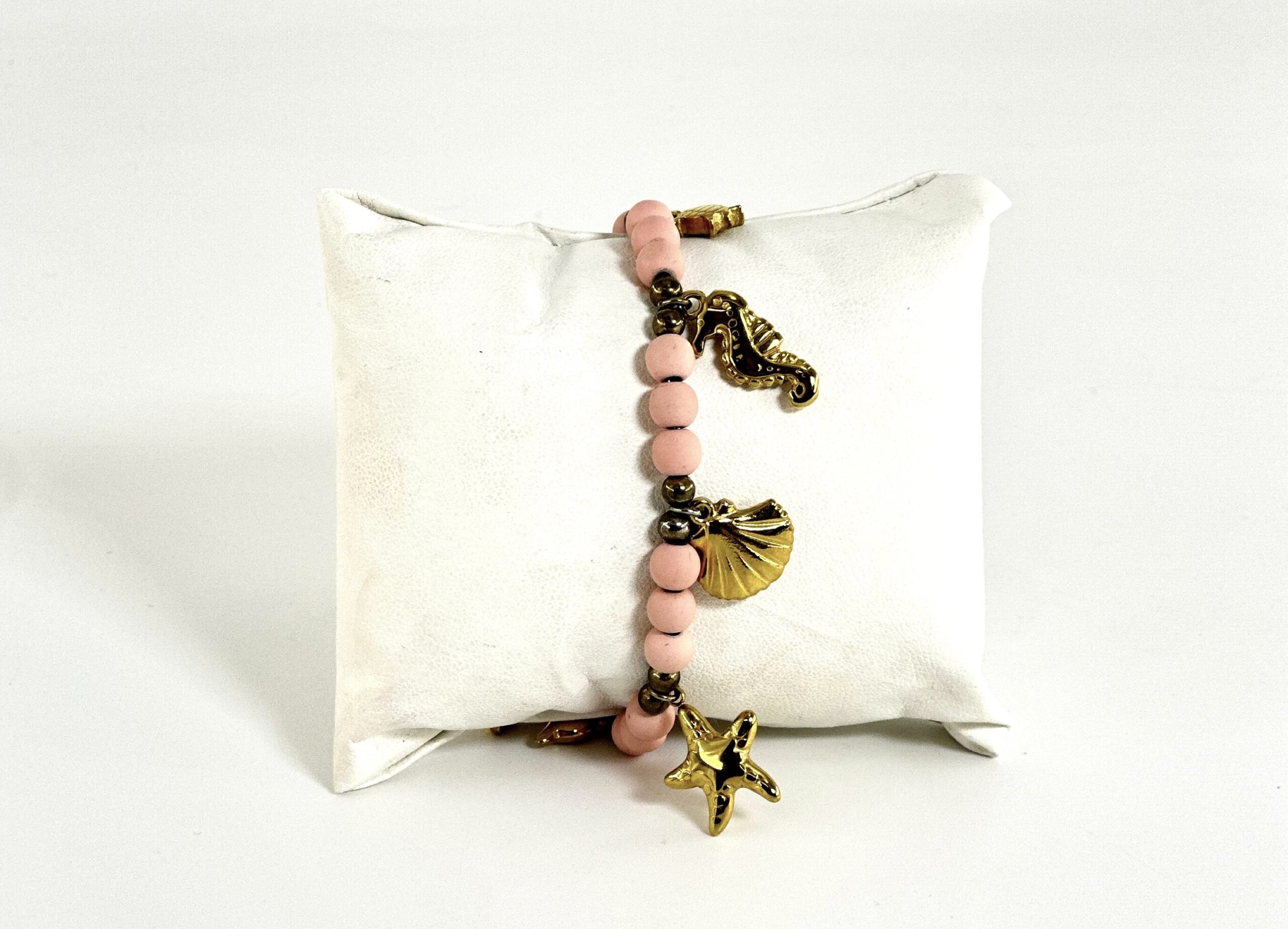 Απόχρωση: Χρυσή με ροζ πέτρες και διάφορα charms σε χρυσή αποχρώση
