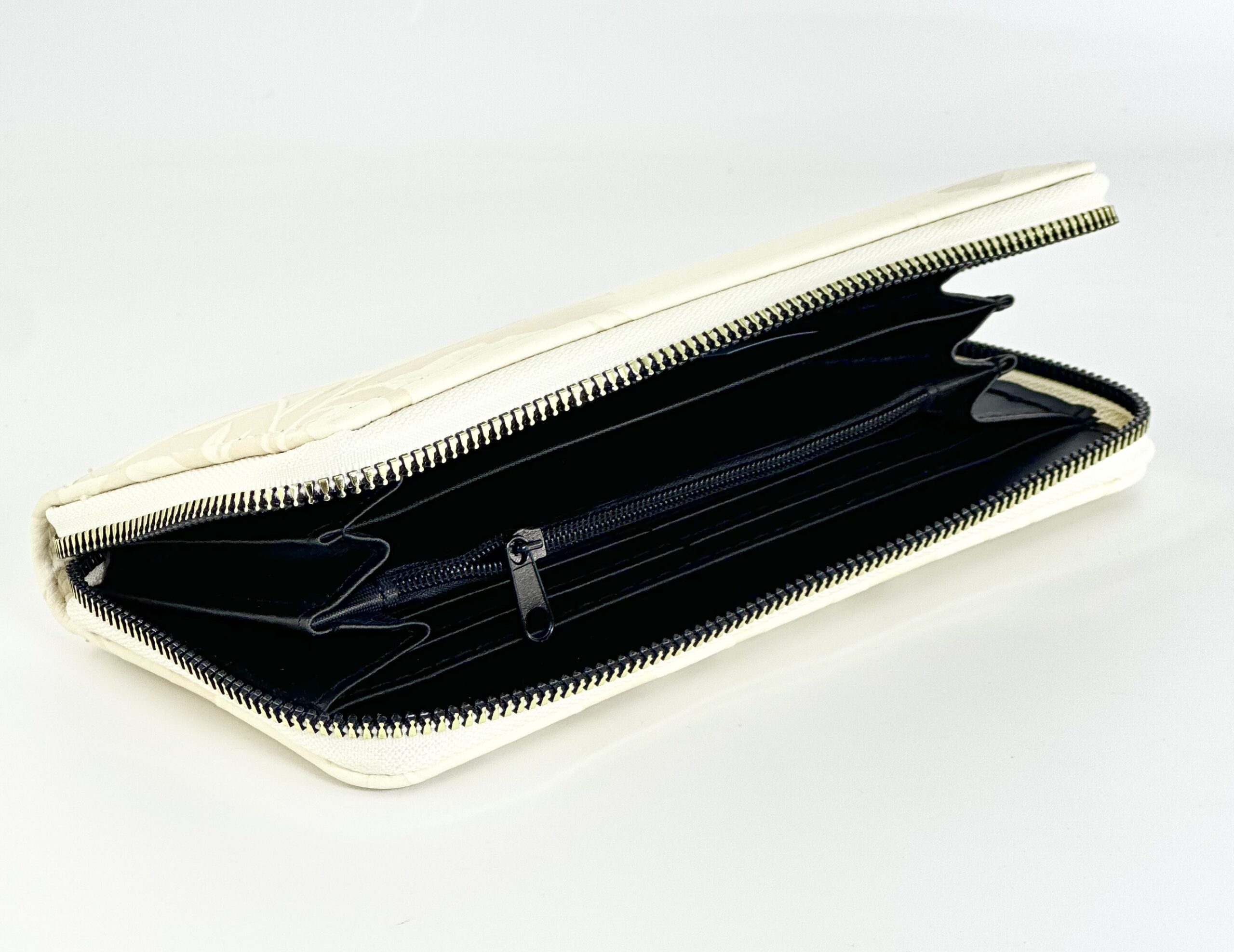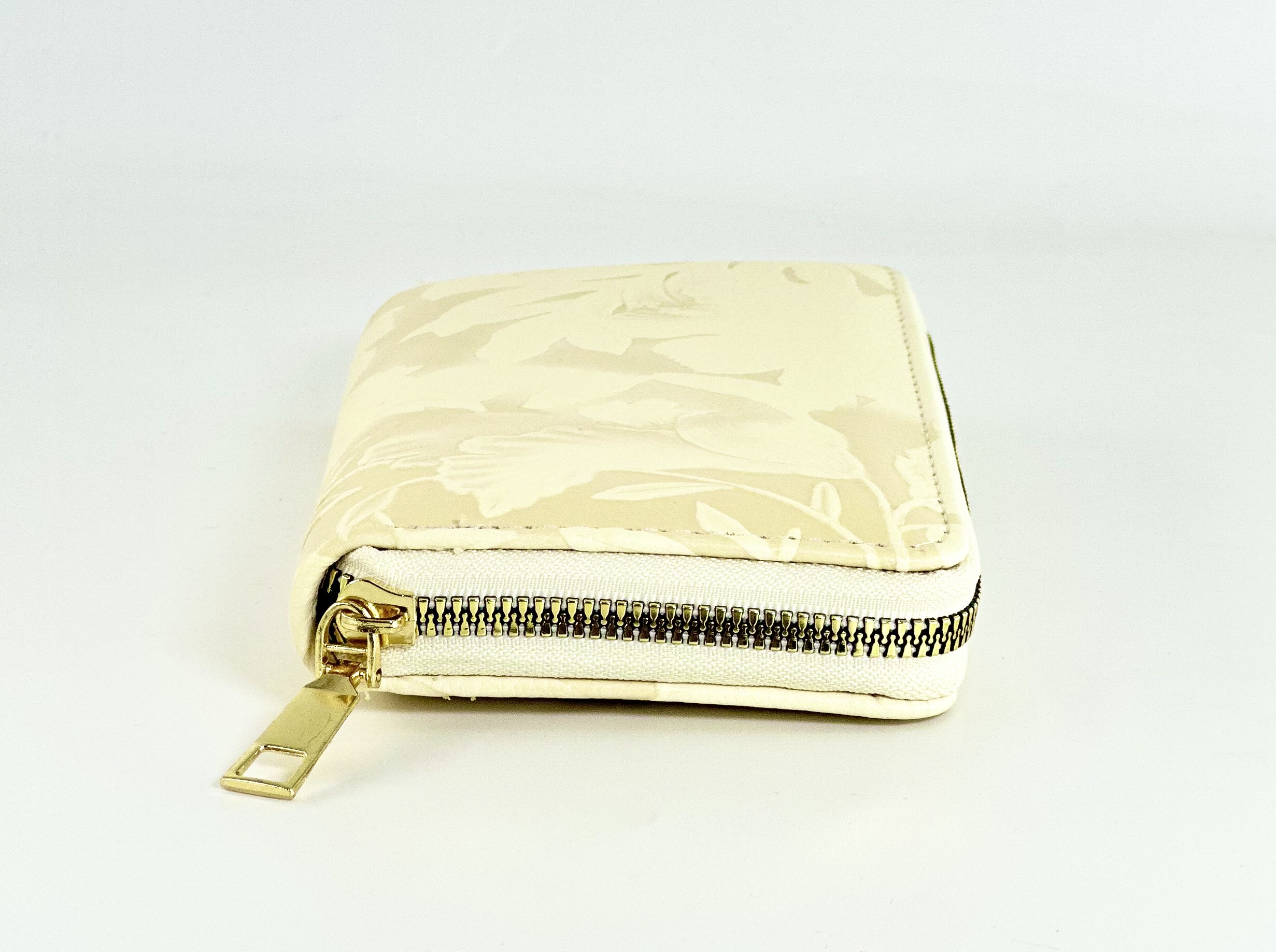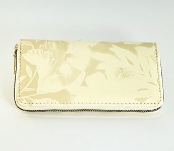 Είναι ορθογώνιο, με φερμουάρ περιμετρικά σε χρυσό τόνο, που προσθέτει πολυτέλεια και εξασφαλίζει ασφάλεια.