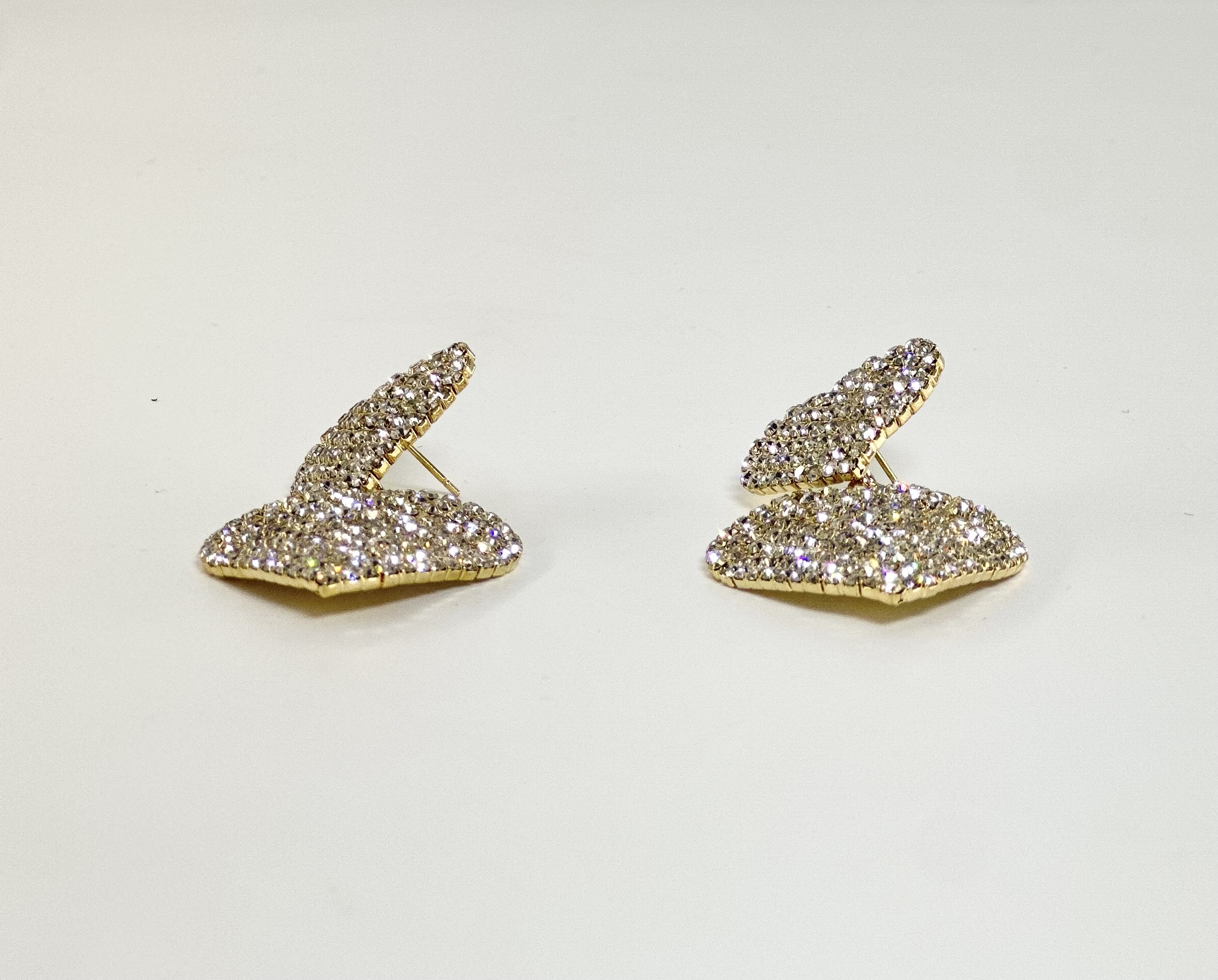 Κάθε καρδιά είναι καλύπτεται πλήρως από λαμπερά στρας, σε αποχρώσεις του διάφανου και χρυσού, που αντανακλούν το φως με κάθε κίνηση.