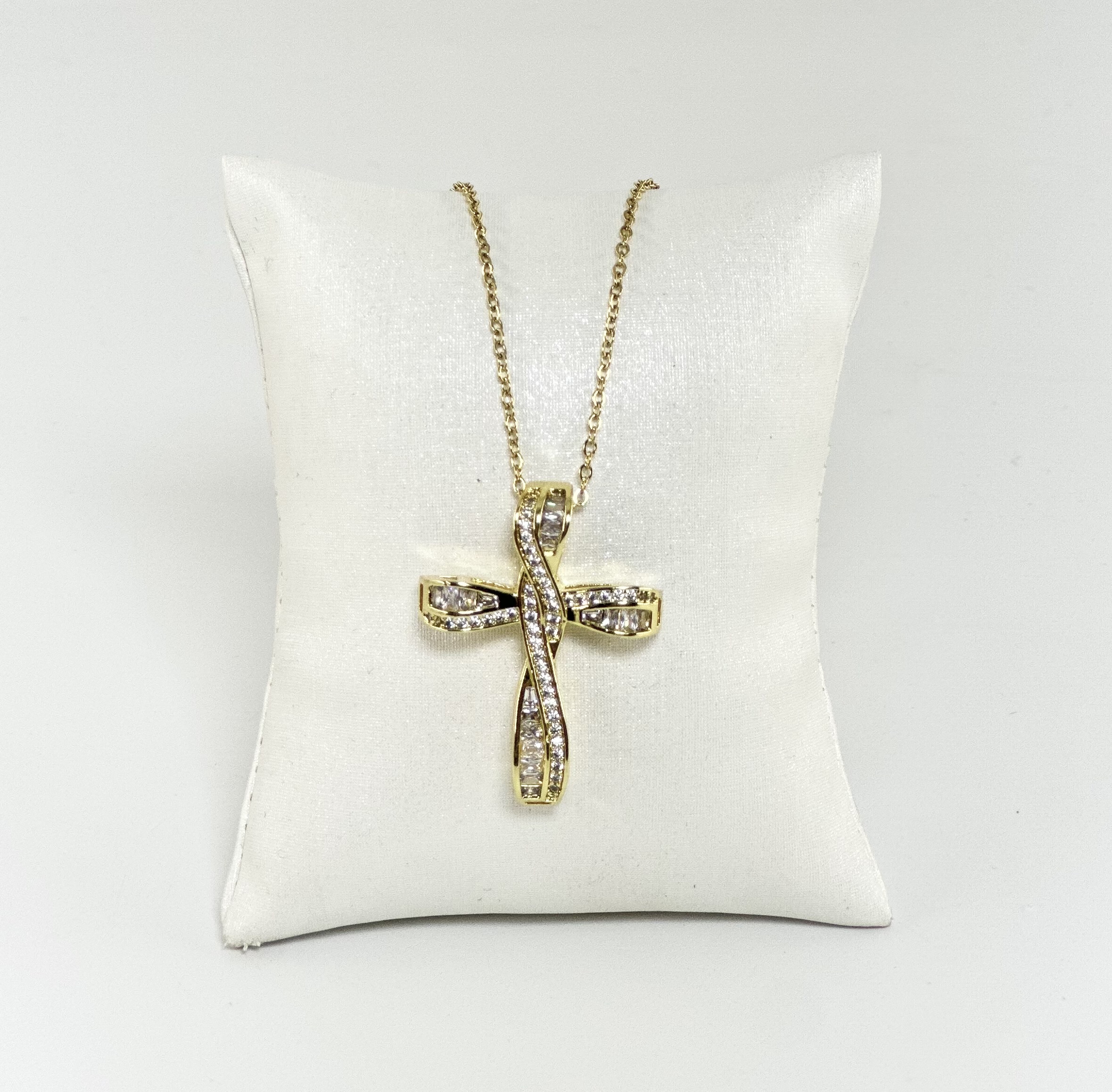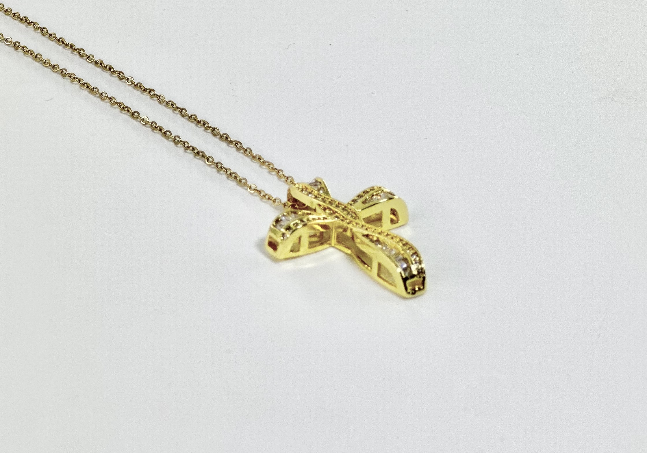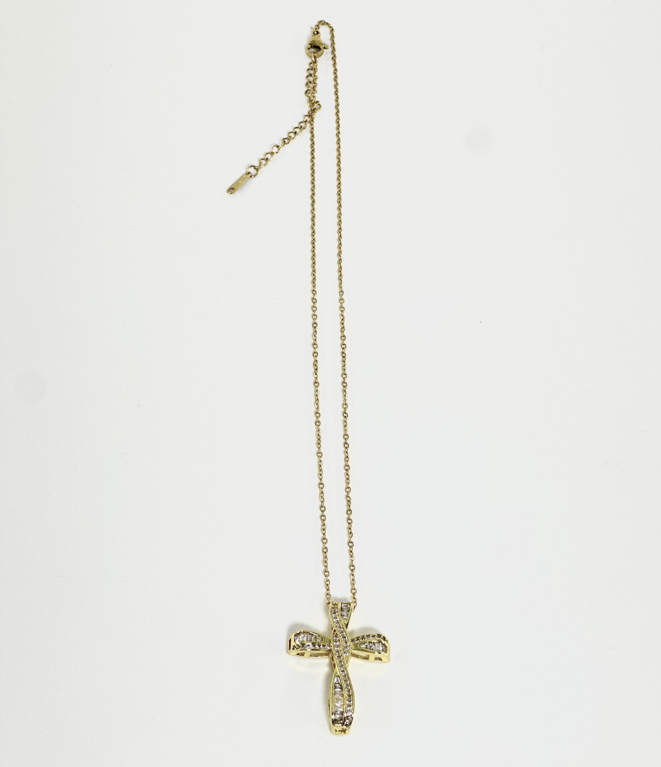 Χρυσός ατσάλινος σταυρός με γυαλιστερό φινίρισμα και στρογγυλεμένες άκρες.