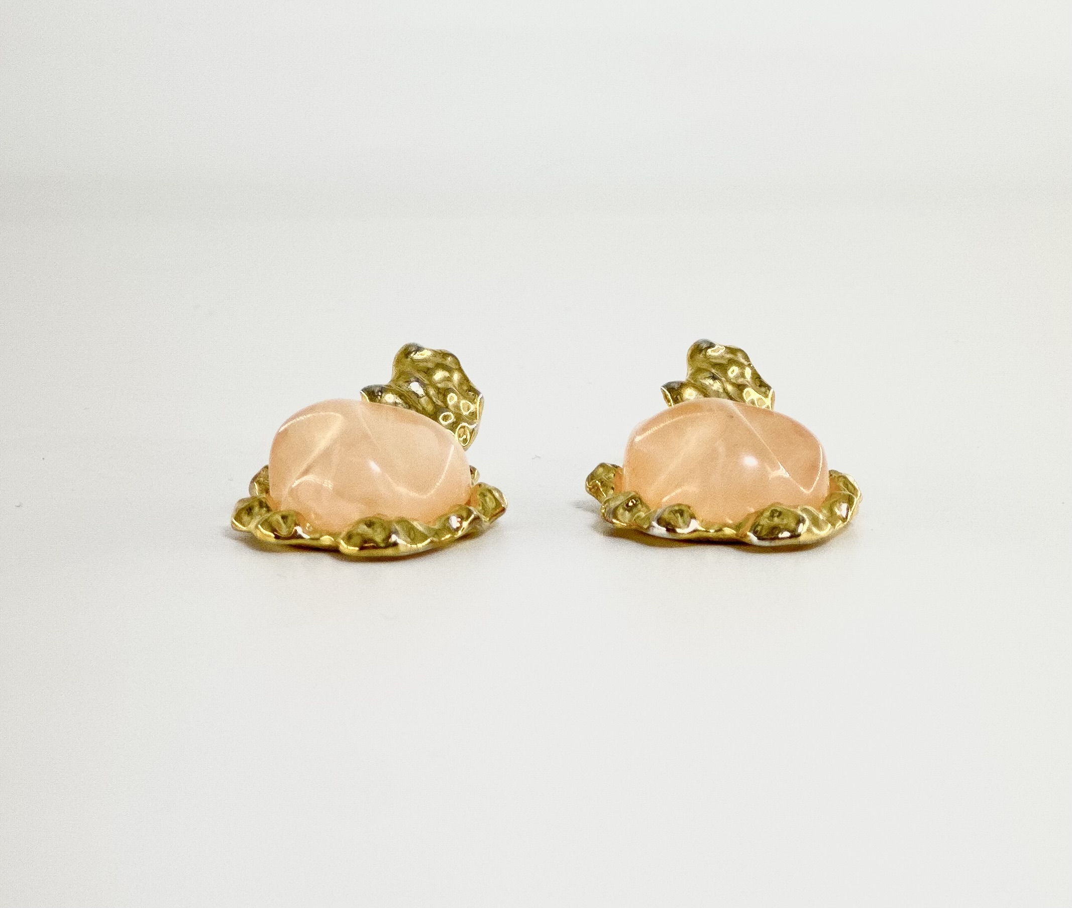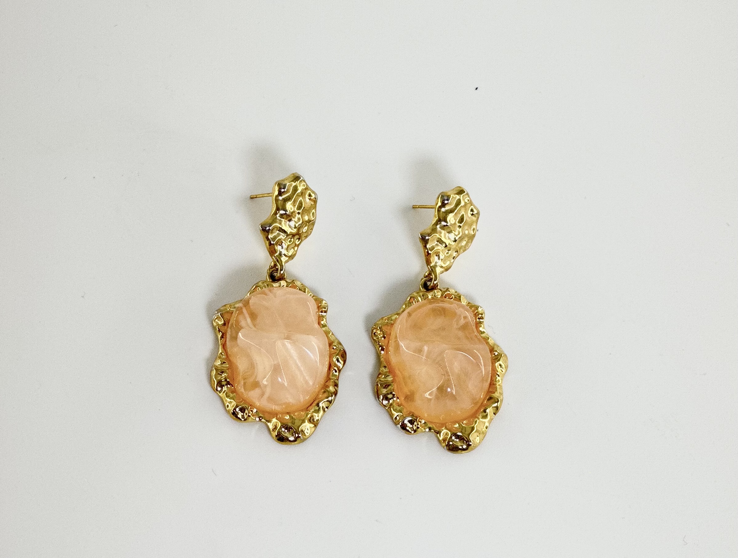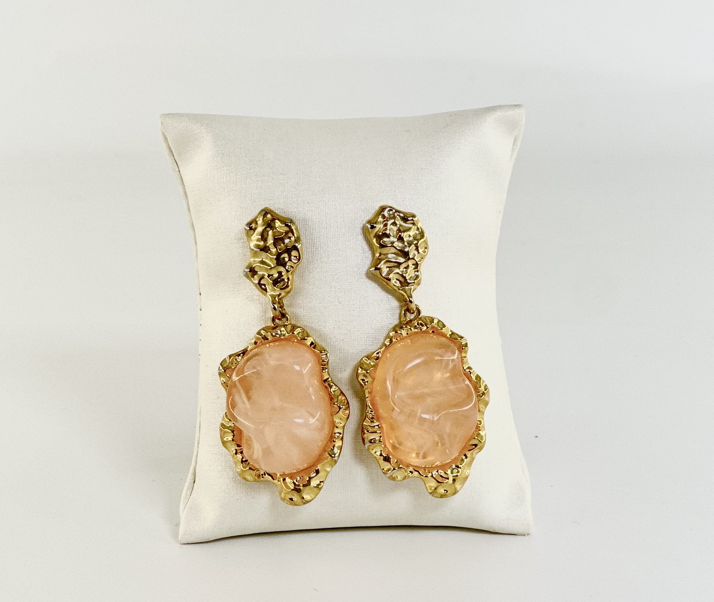 Απόχρωση: Χρυσή βάση με ανάγλυφη ακανόνιστη επιφάνεια και μια πέτρα σε ροδακινί απόχρωση