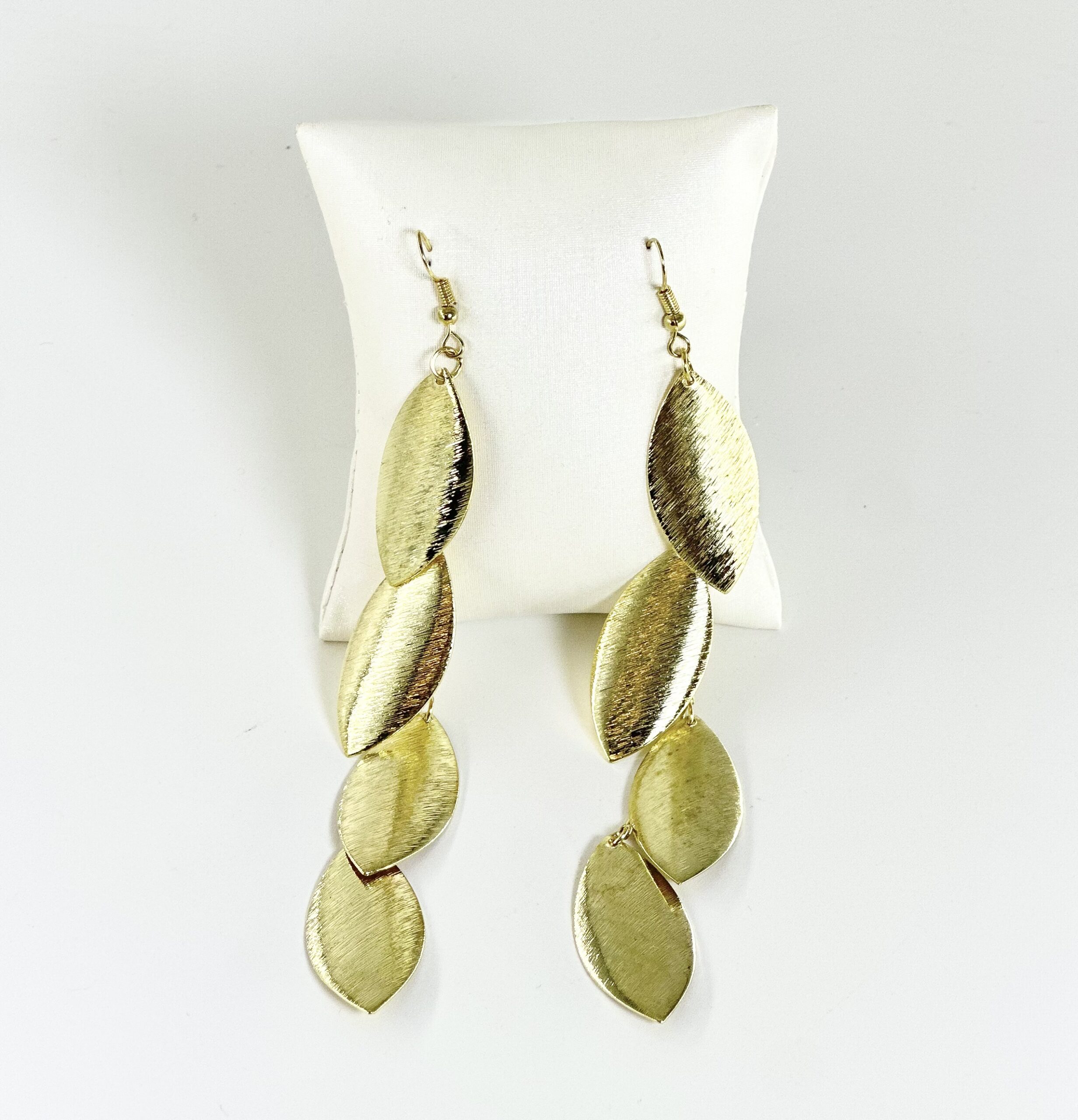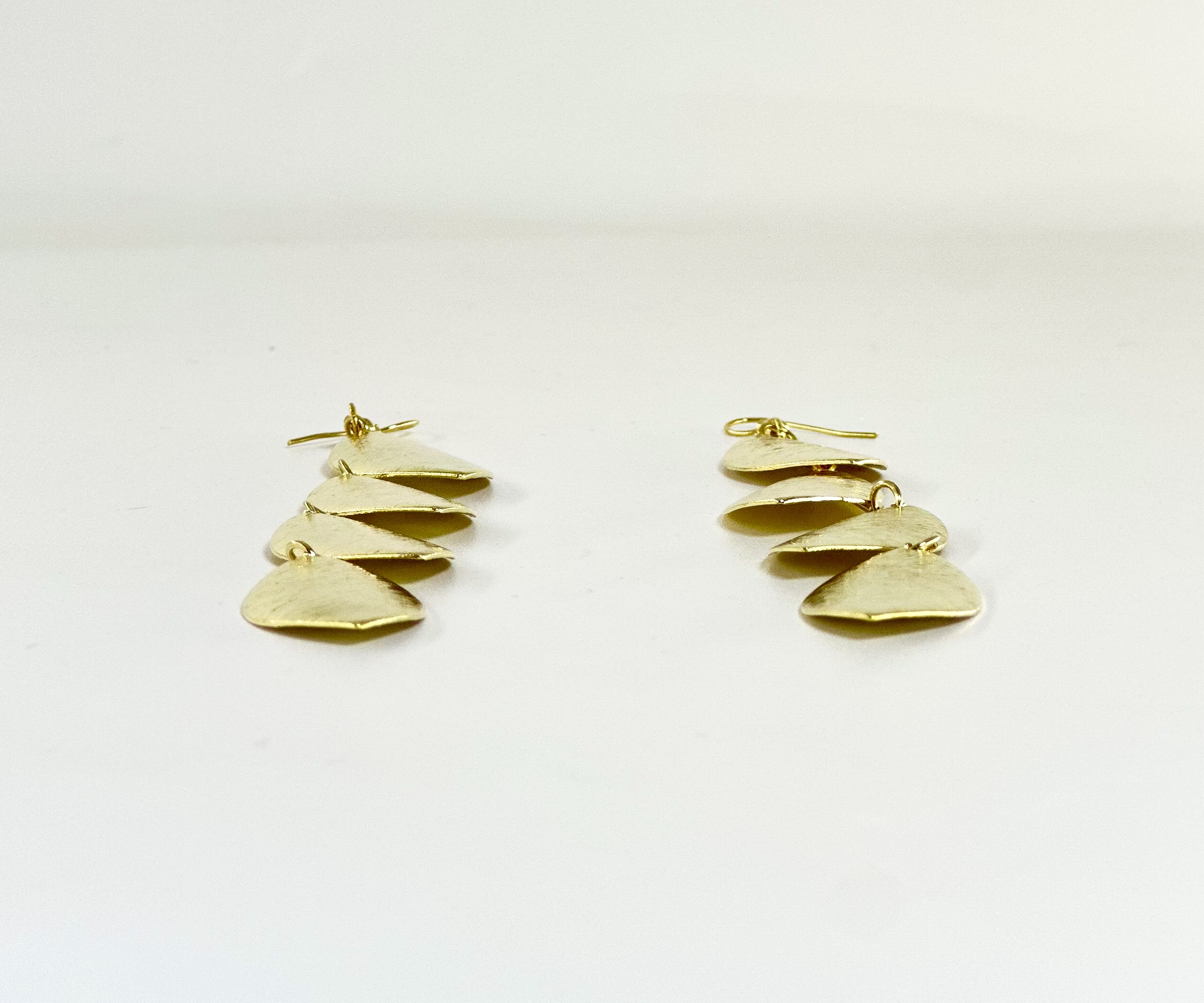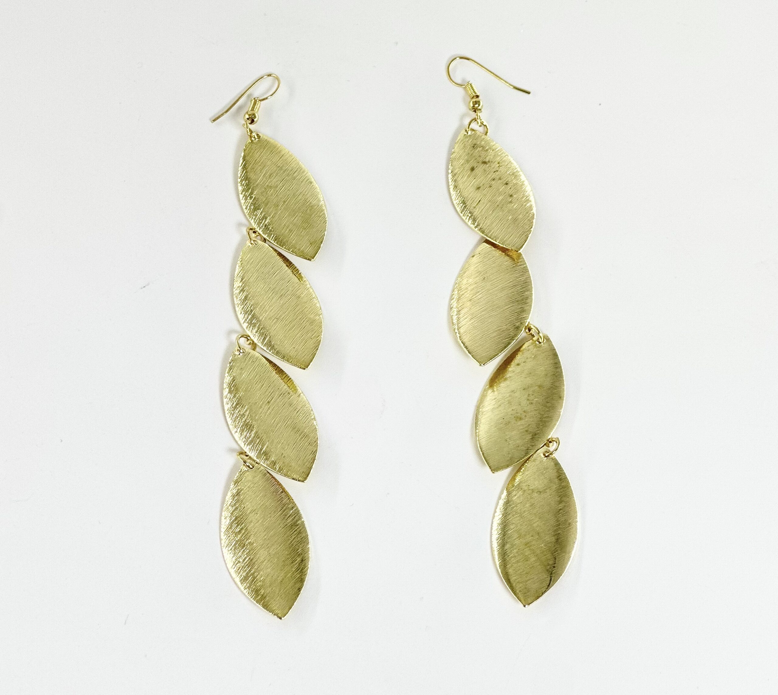 Πρόκειται για μακριά, κρεμαστά σκουλαρίκια αποτελούμενα από πέντε μεταλλικά στοιχεία σε σχήμα φύλλου, ενωμένα μεταξύ τους ώστε να κινούνται απαλά.
