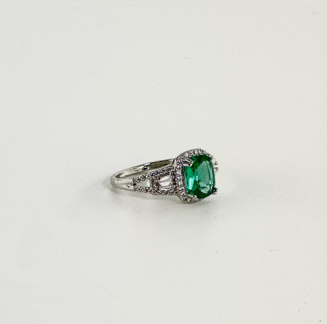 Απόχρωση: Ασημί με στρας και μία μεγάλη εντυπωσιακή πράσινη πέτρα στο κέντρο