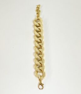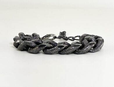 Πρόκειται για ασημί μεταλλικό βραχιόλι τύπου chunky chain, με μεγάλους κρίκους σε οβάλ σχήμα.