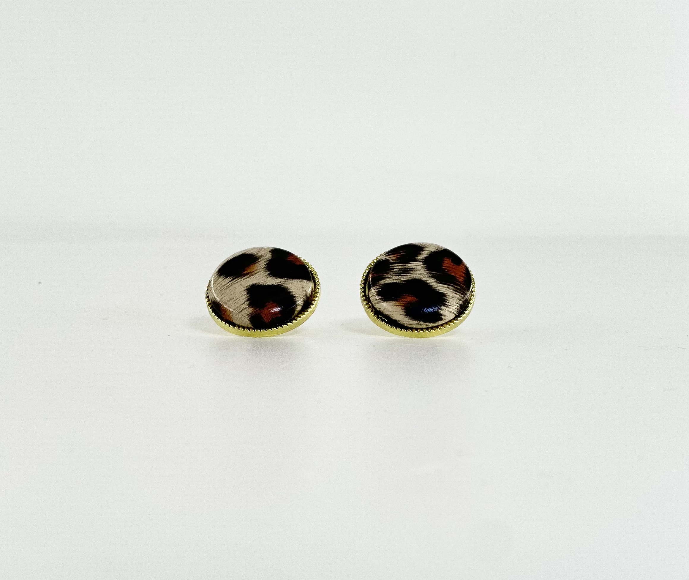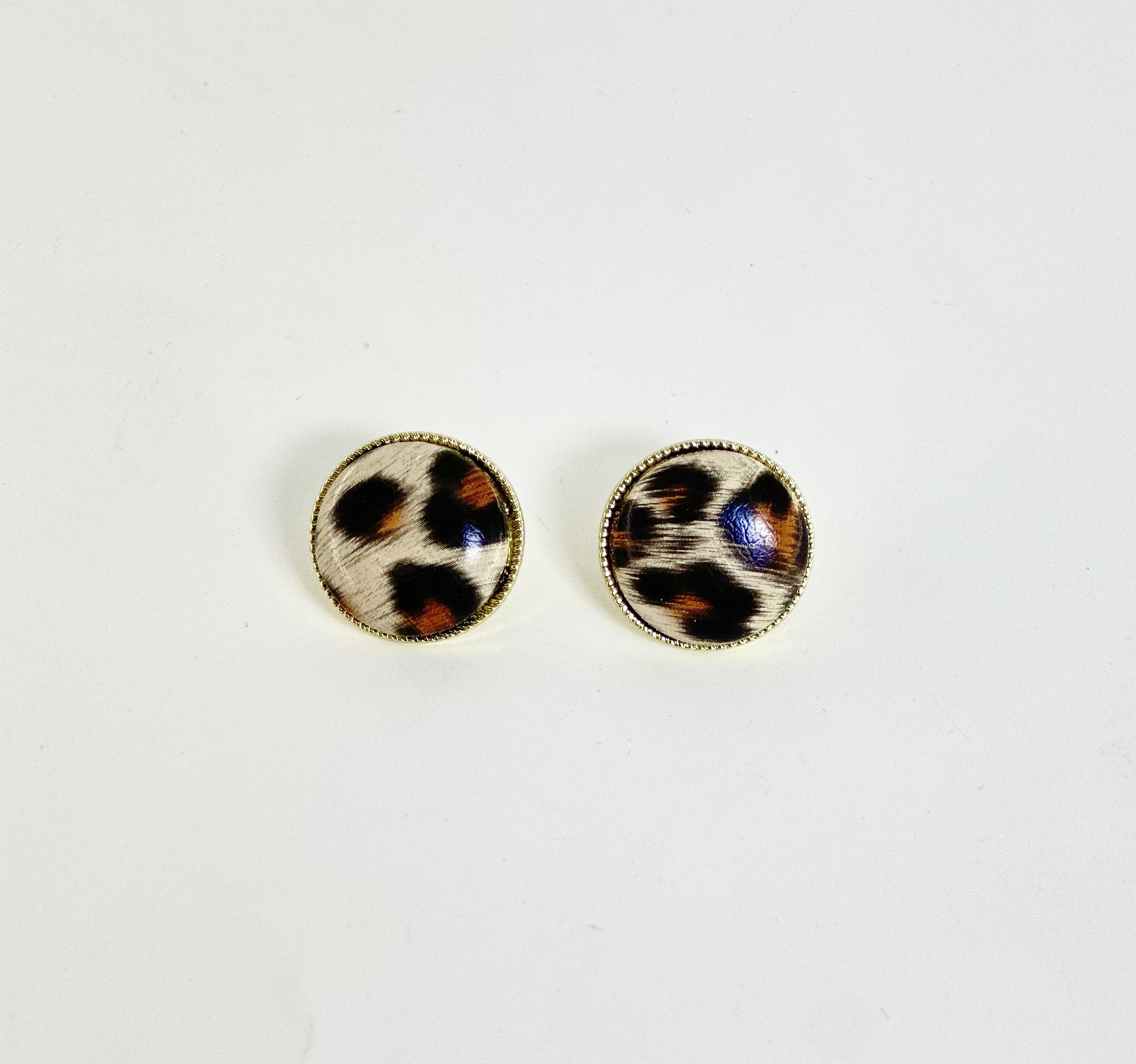 Πρόκειται για στρογγυλά σκουλαρίκια με λεοπάρ μοτίβο σε αποχρώσεις μαύρου, καφέ και μπεζ, που προσδίδουν έναν εξωτικό και fashion-forward χαρακτήρα.