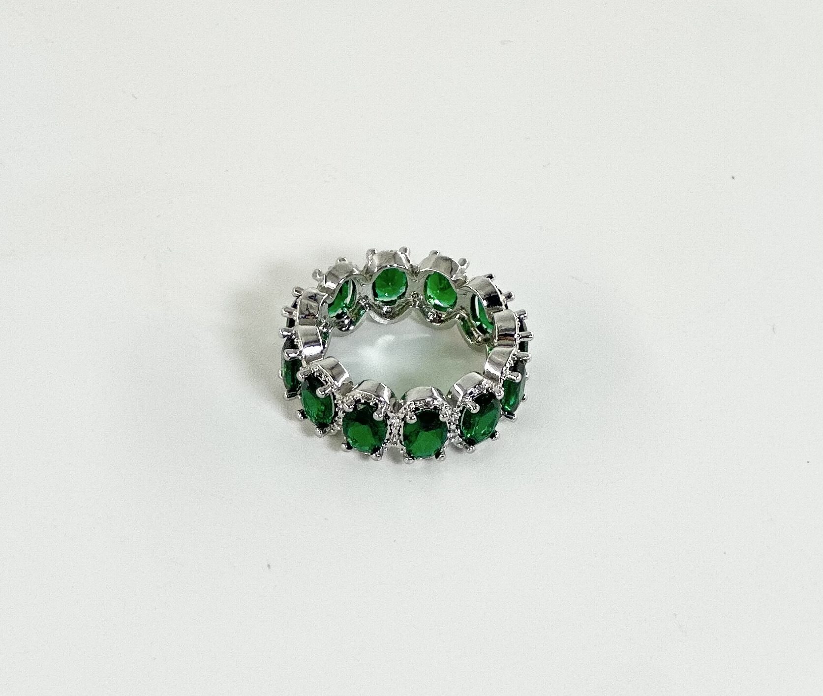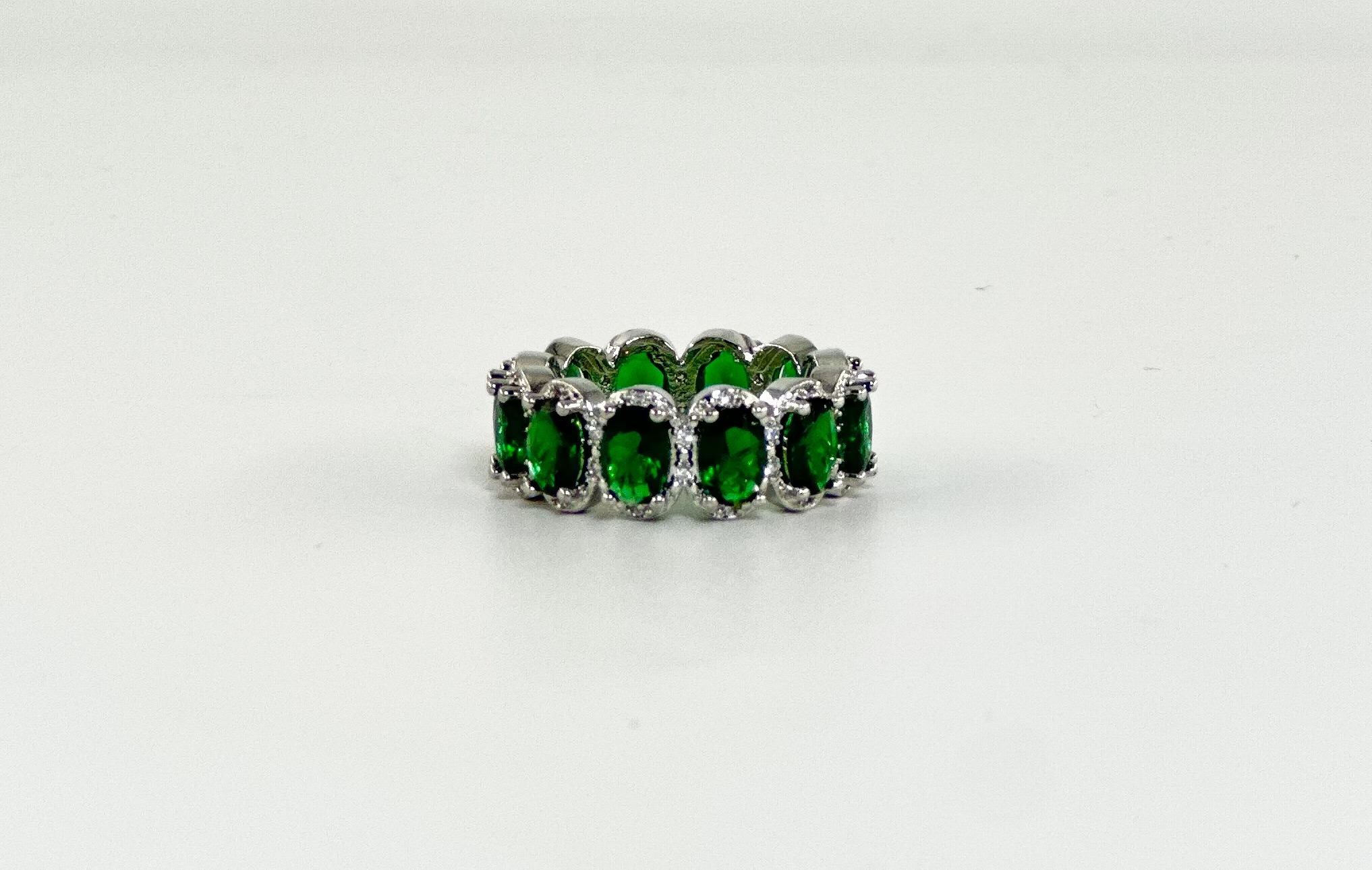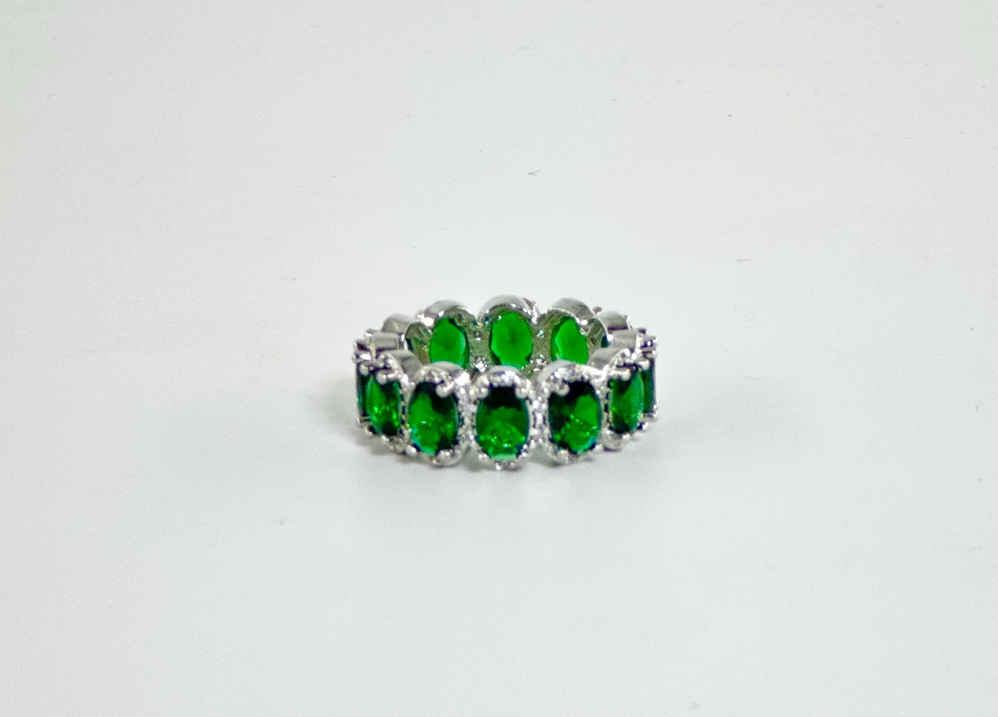 Απόχρωση: Ασημί με λευκά στρας και μεγάλες οβάλ σμαραγδί πέτρες