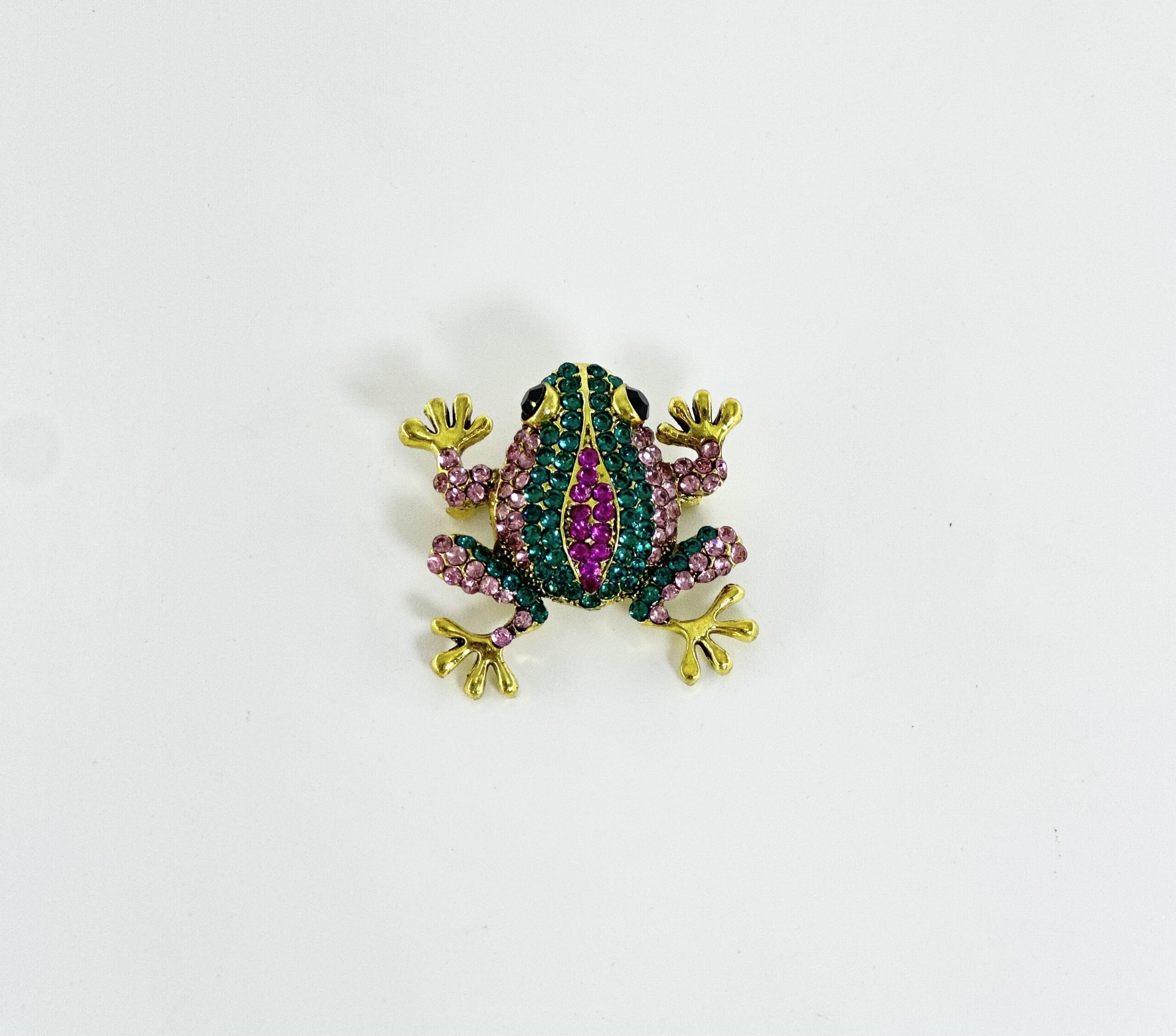 Απόχρωση: Χρυσή με πράσινα και ροζ στρας σε σχήμα βάτραχου