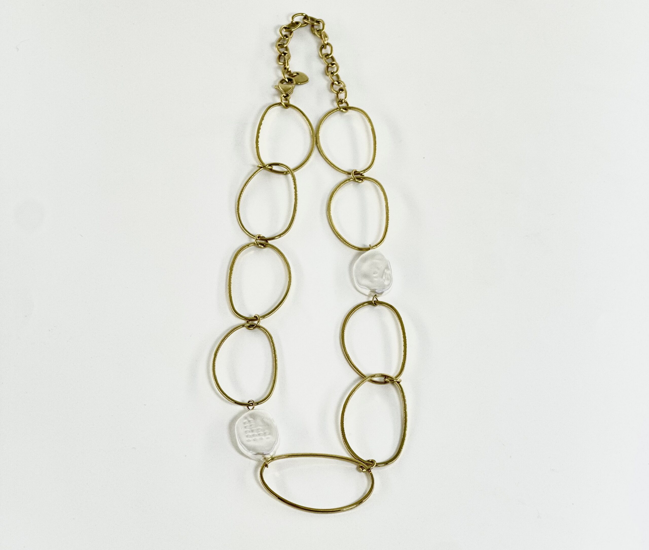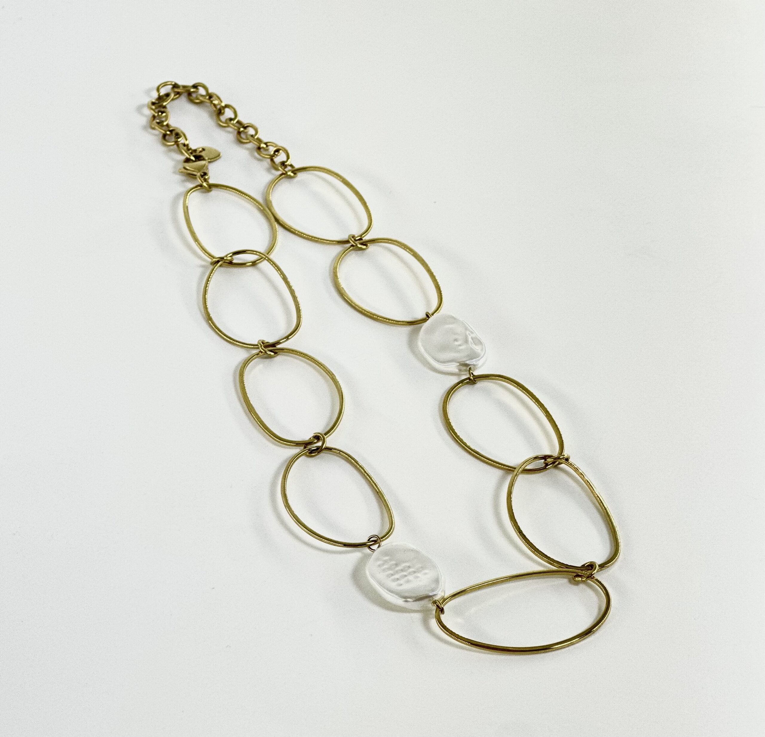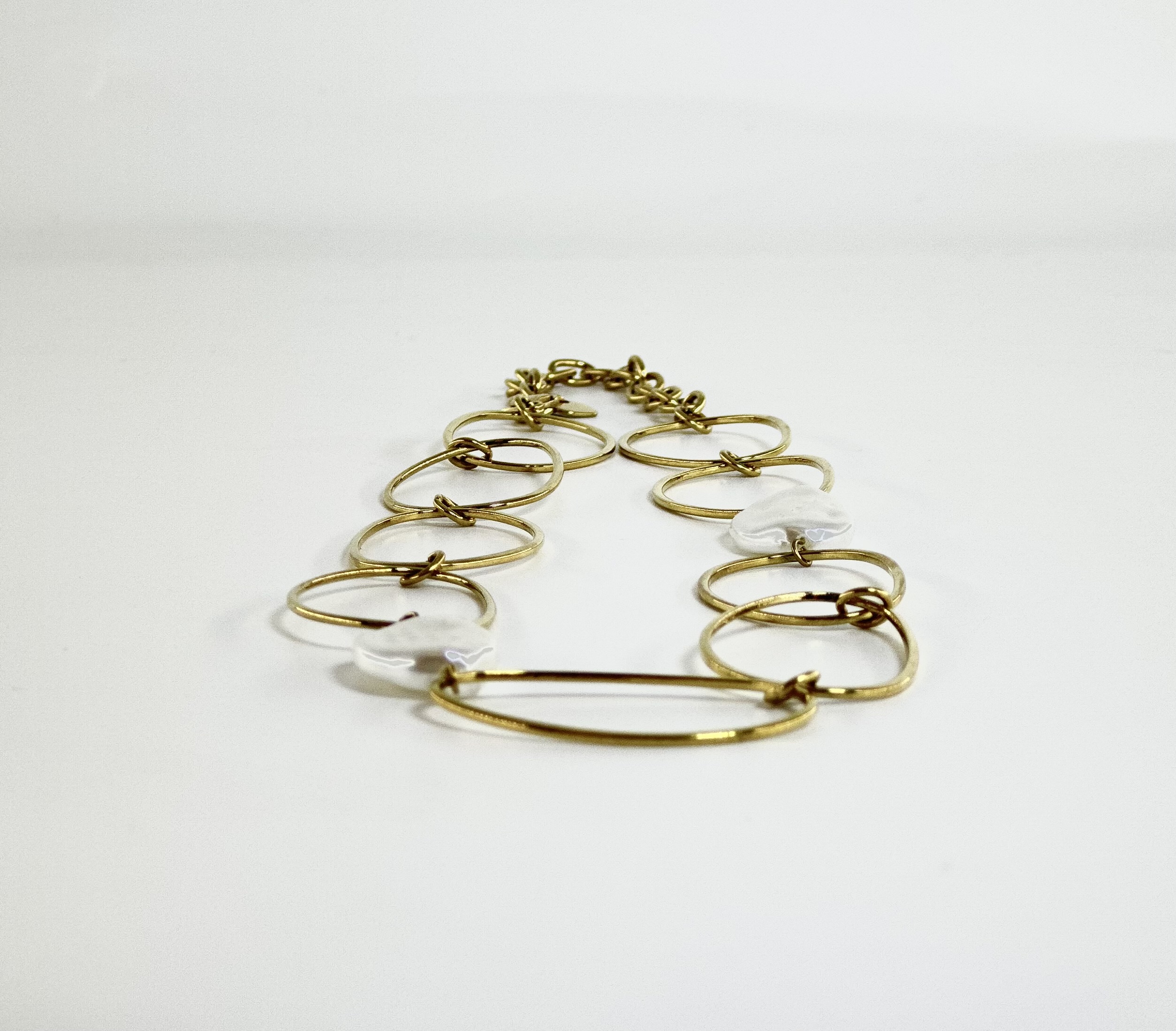 Απόχρωση: Χρυσή με ακανόνιστους μεγάλους οβάλ κρίκους ενωμένους με δύο λευκά στοιχεία σε σχήμα ακανόνιστου μαργαριταριού