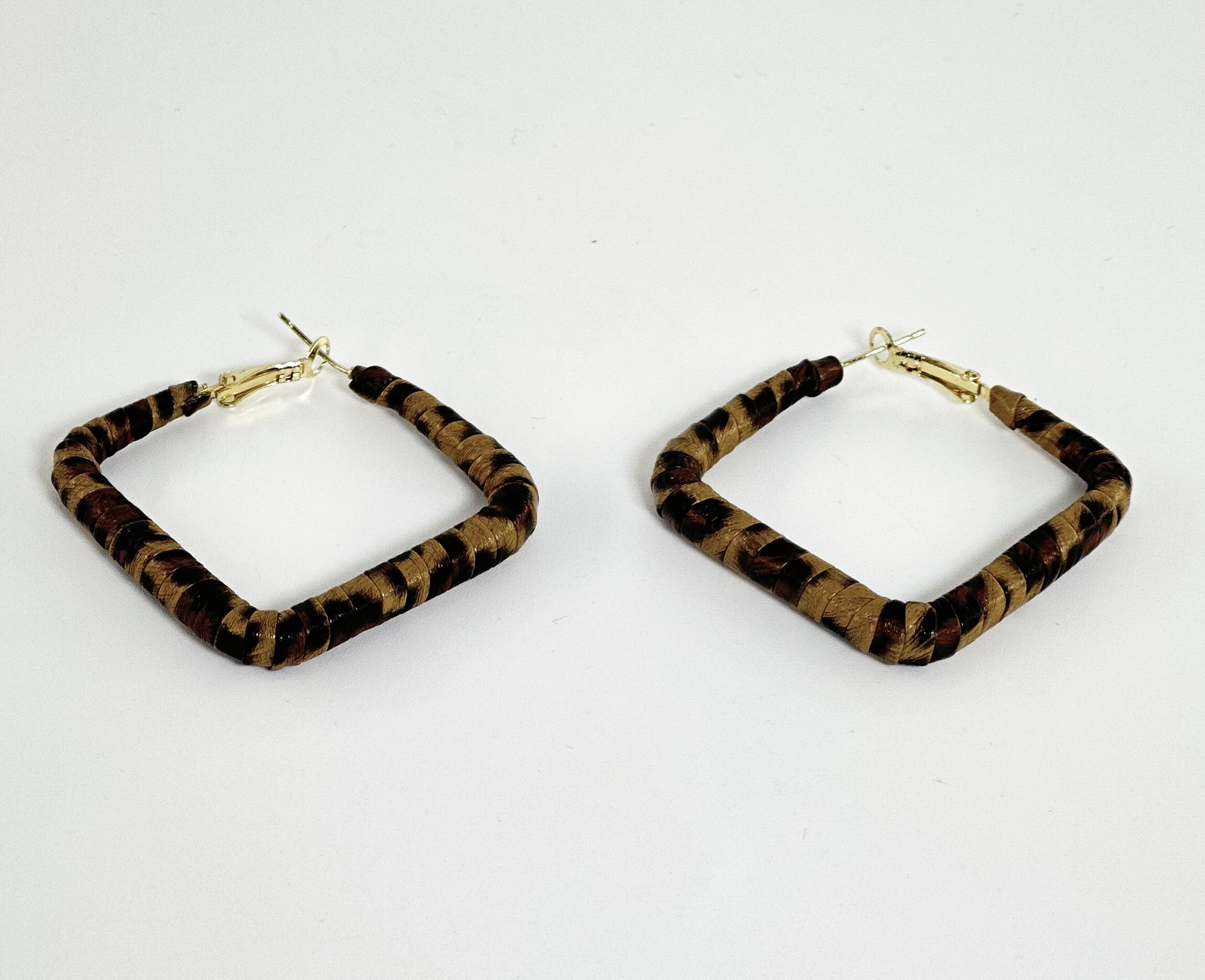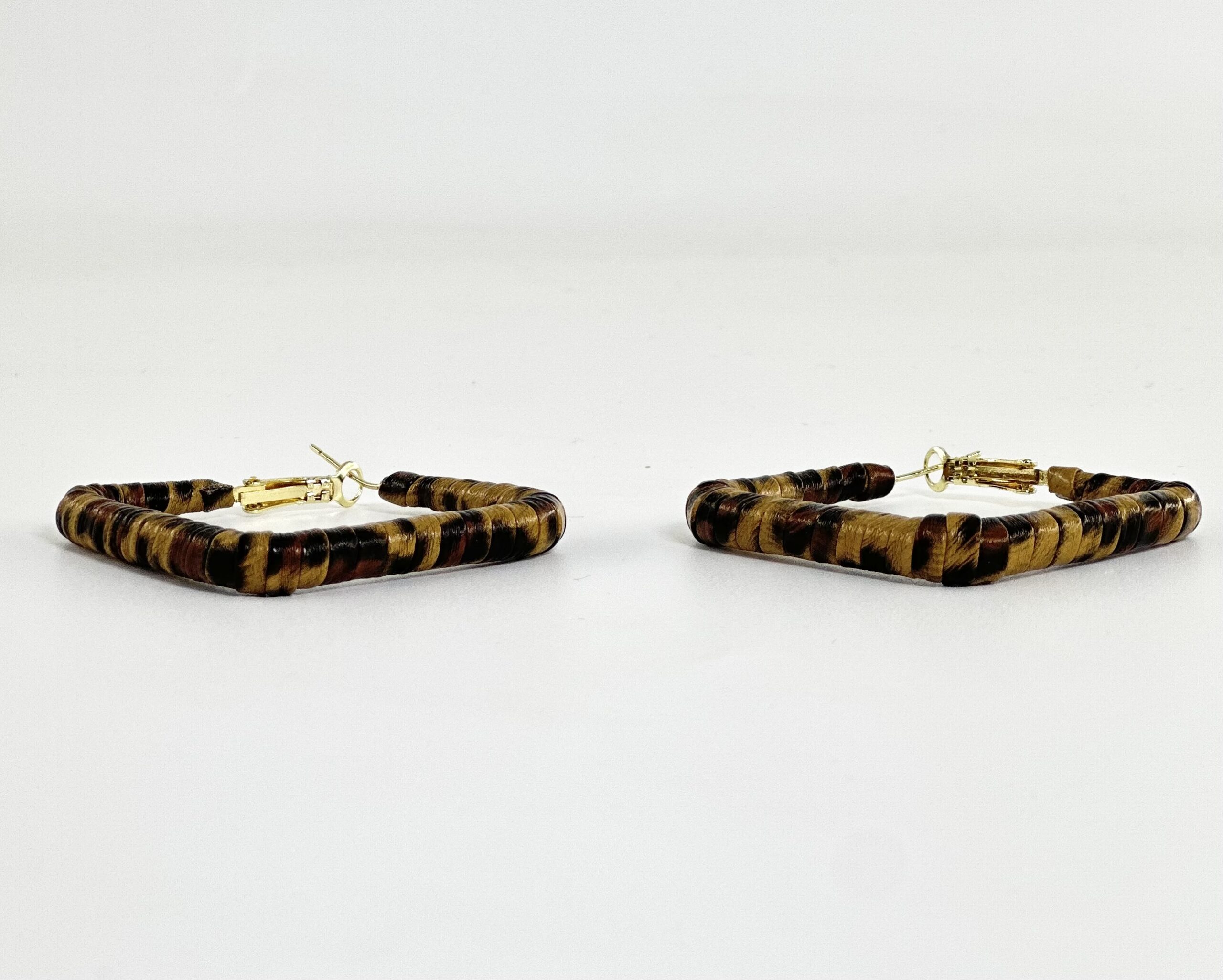 Λεοπάρ ματ σκουλαρίκια, με ατσάλινο σκελετό, καλυμμένο με λεπτό νήμα σε animal print απόχρωση και δερμάτινη υφή.