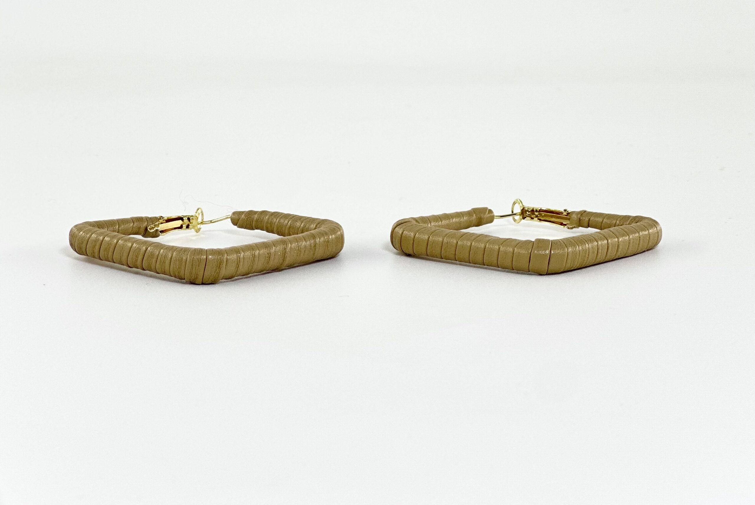 Ταμπά ματ σκουλαρίκια, με ατσάλινο σκελετό, καλυμμένο με λεπτό ταμπά νήμα και δερμάτινη υφή.