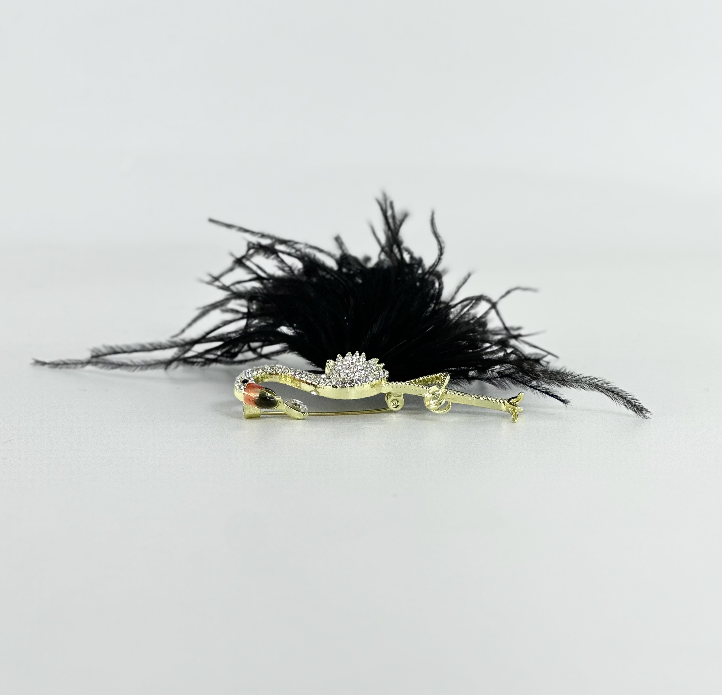 Απόχρωση: Χρυσή με λευκά στρας και μαύρα πούπουλα