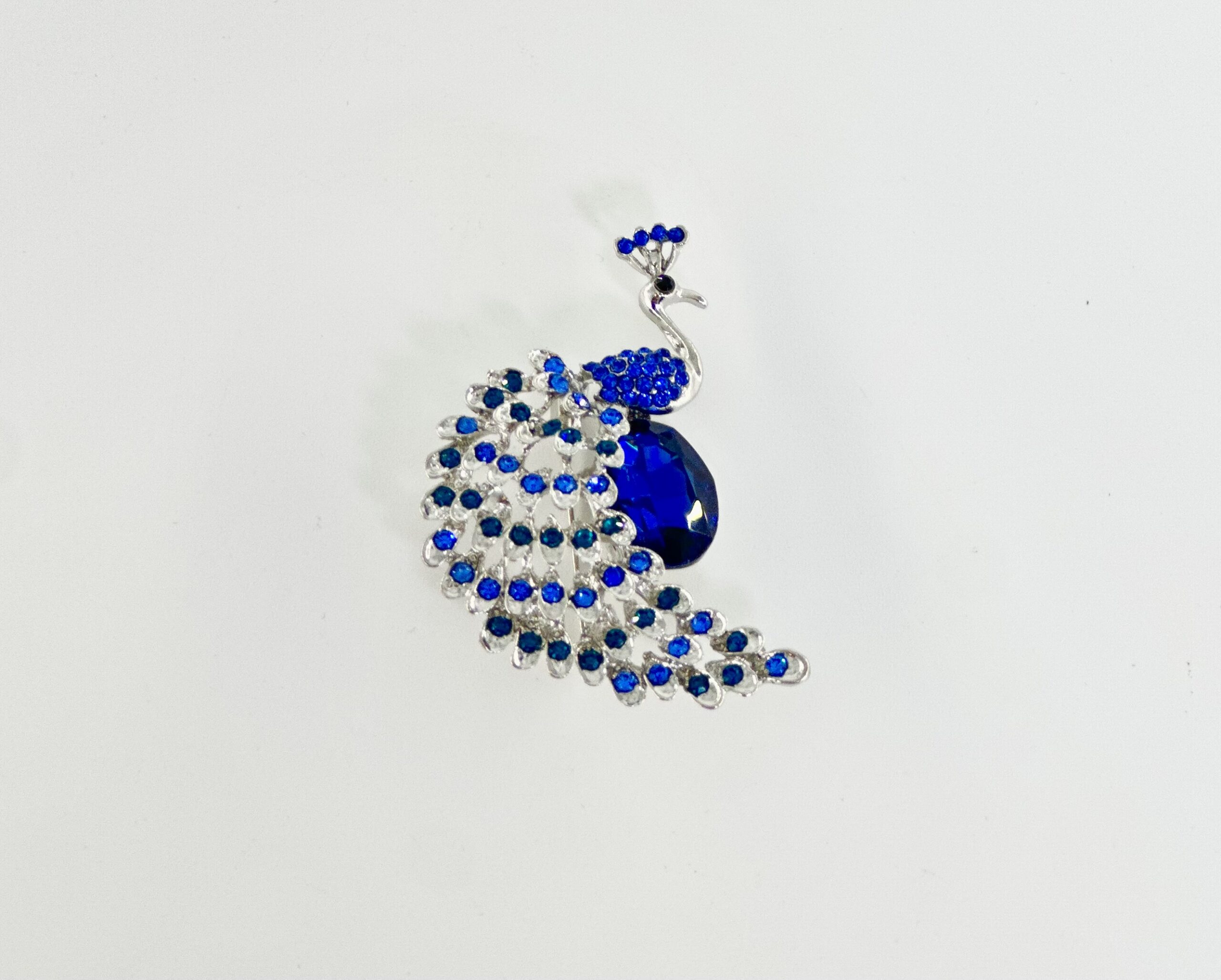 Απόχρωση: Ασημί παγώνι με μπλε στρας και μία μεγάλη μπλε πέτρα στο κέντρο