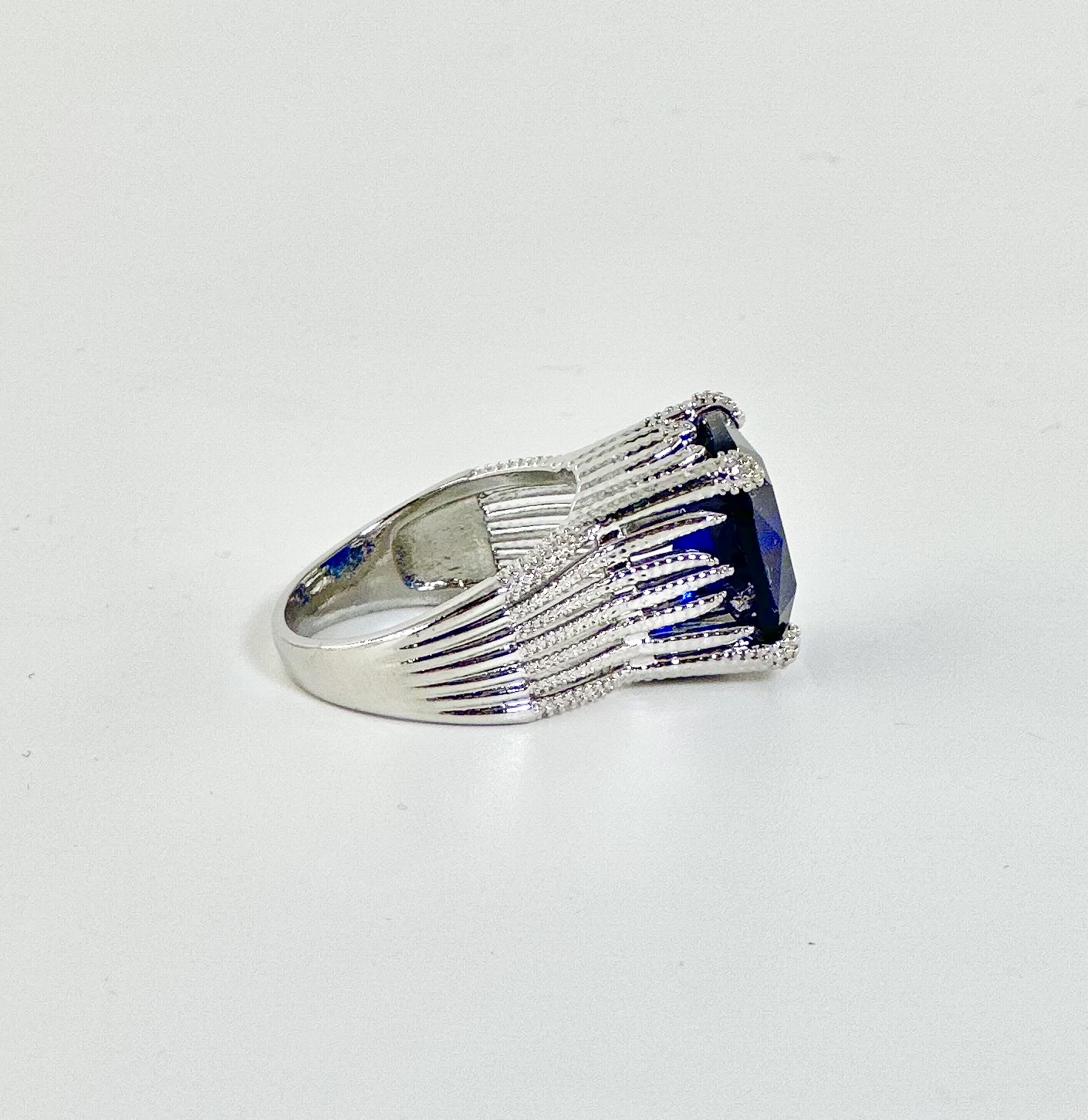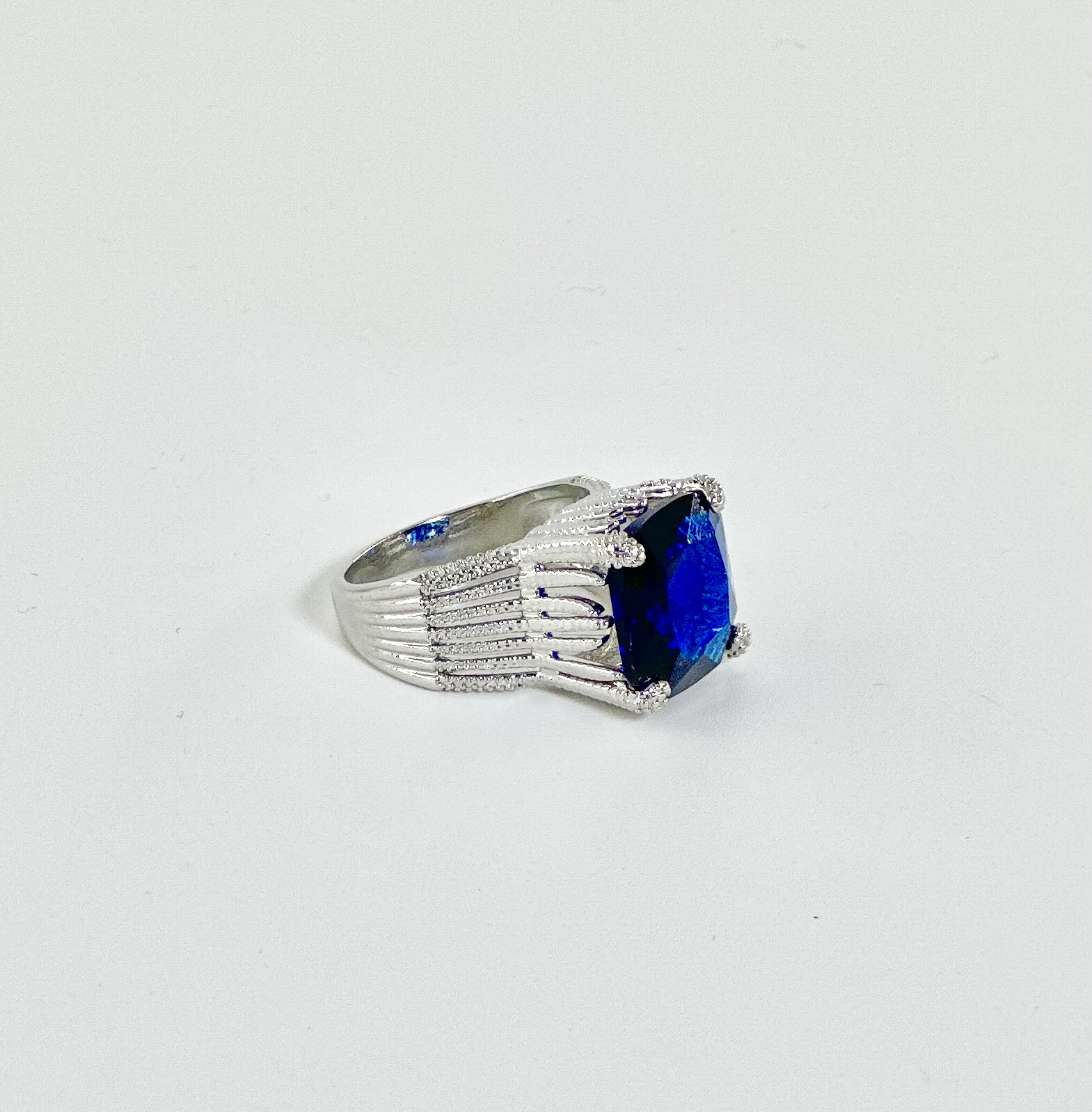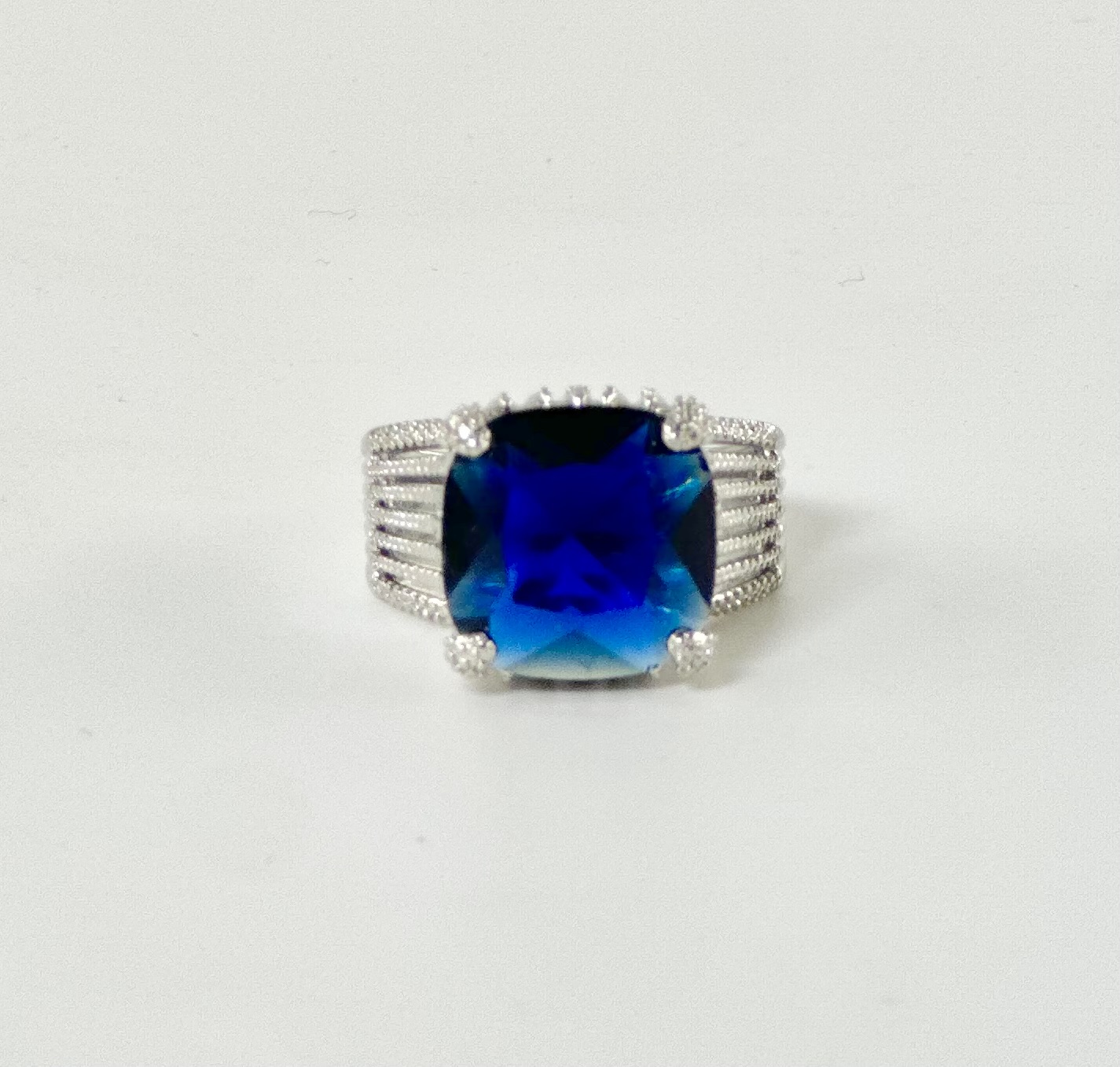 Λευκόχρυση βάση με γυαλιστερό φινίρισμα που συγκρατεί στο κέντρο μία μεγάλη τετράγωνη γυαλιστερή πέτρα,
