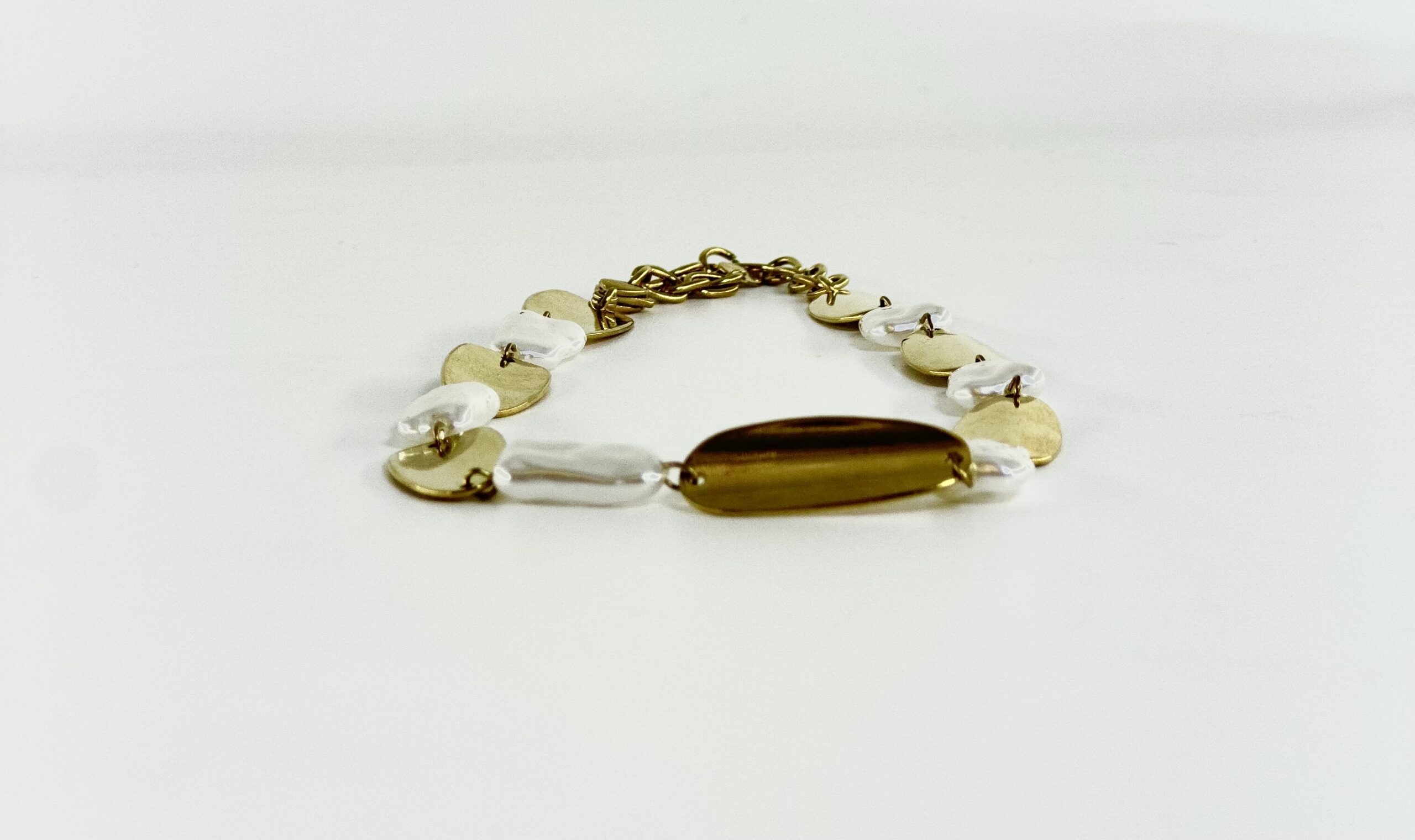 Απόχρωση: Χρυσές μεταλλικές πλάκες με λευκές ακανόνιστες πέτρες που μοιάζουν με μαργαριτάρια