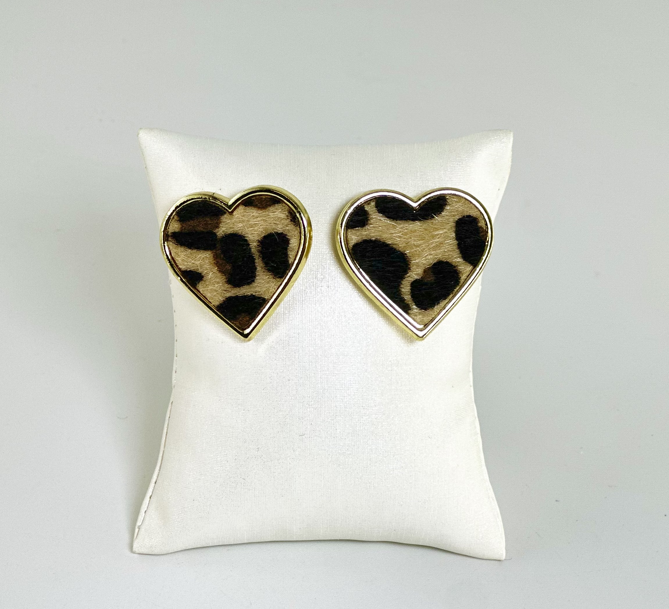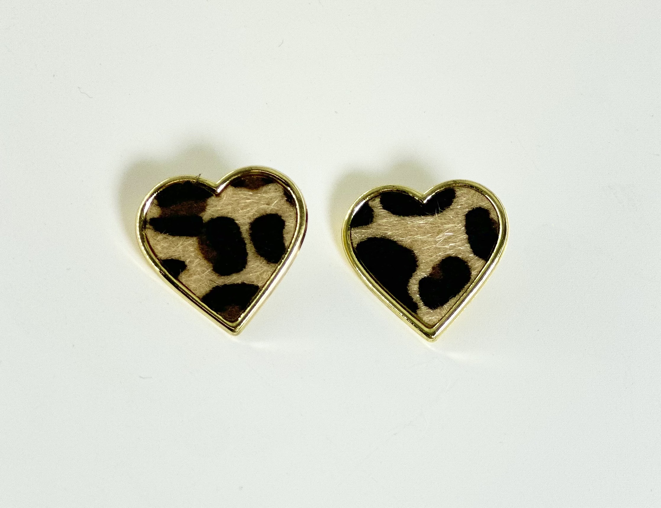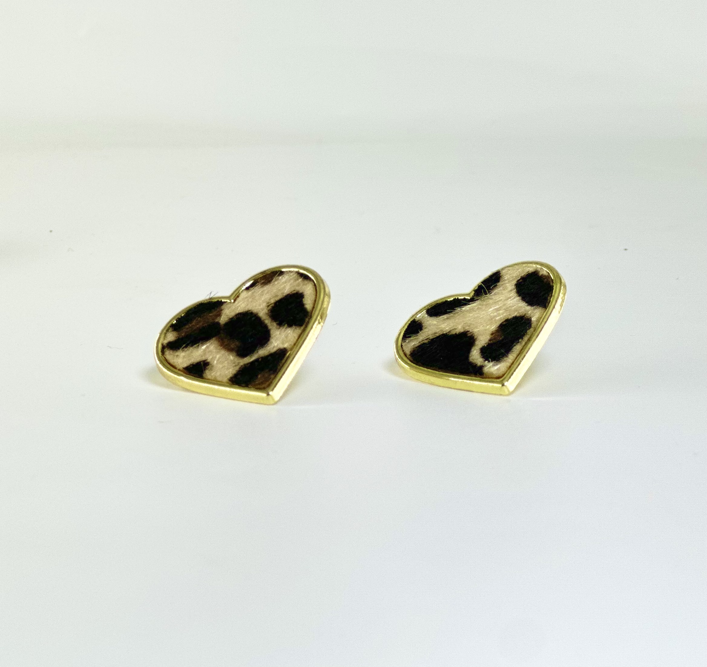 Σκουλαρίκια σε σχήμα καρδιάς, με λεοπάρ σχέδιο σε αποχρώσεις μπεζ, καφέ και μαύρου.