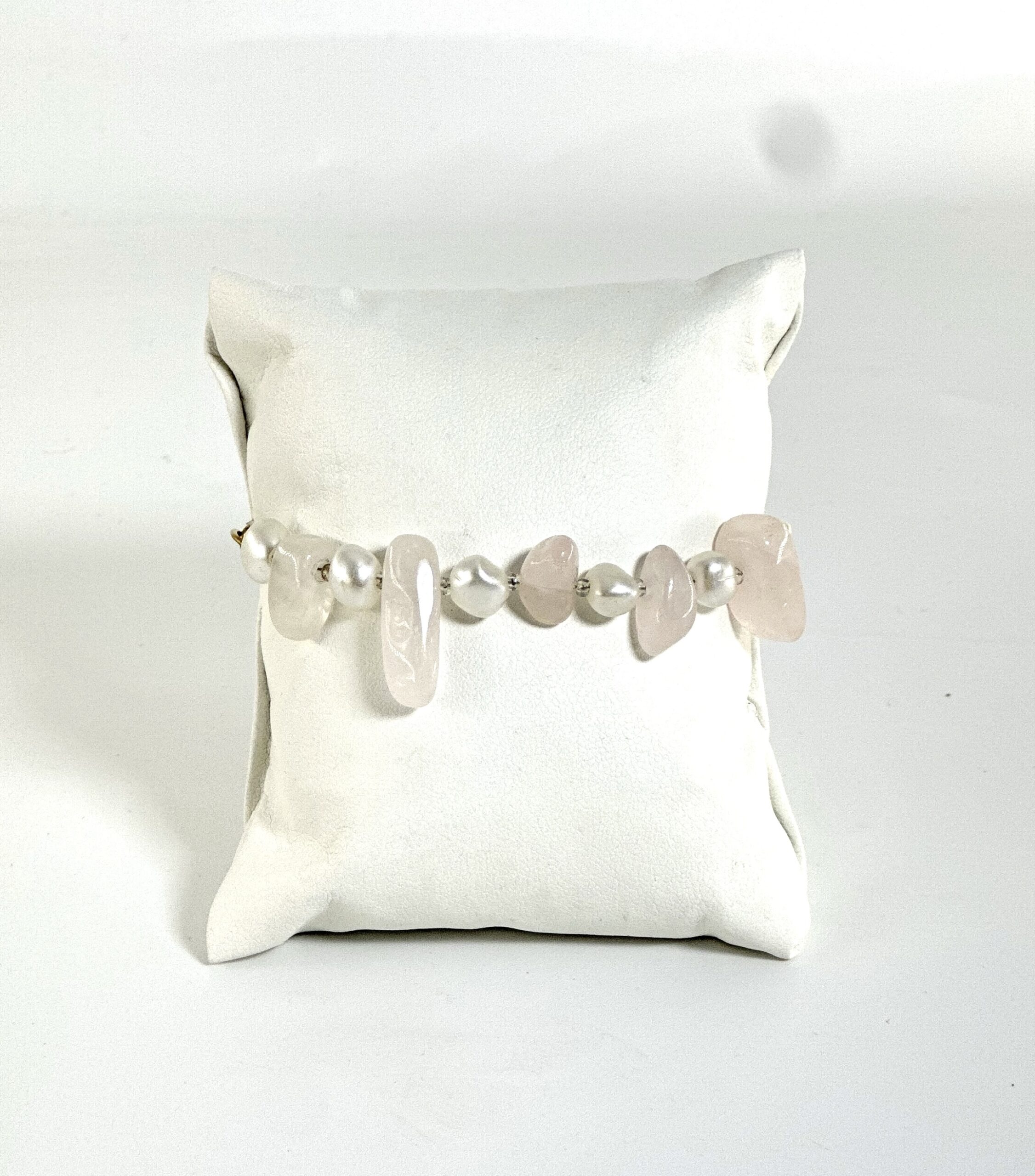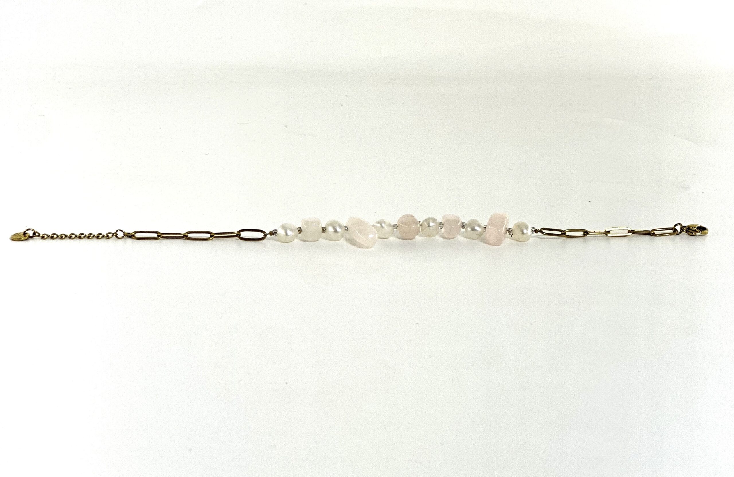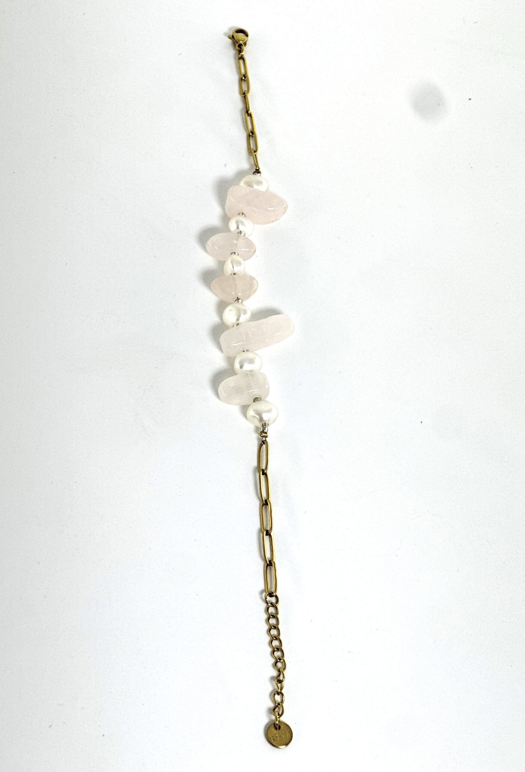 Σχέδιο: Αλυσίδα με διάφορες ακανόνιστες ροζ και λευκές πέτρες
