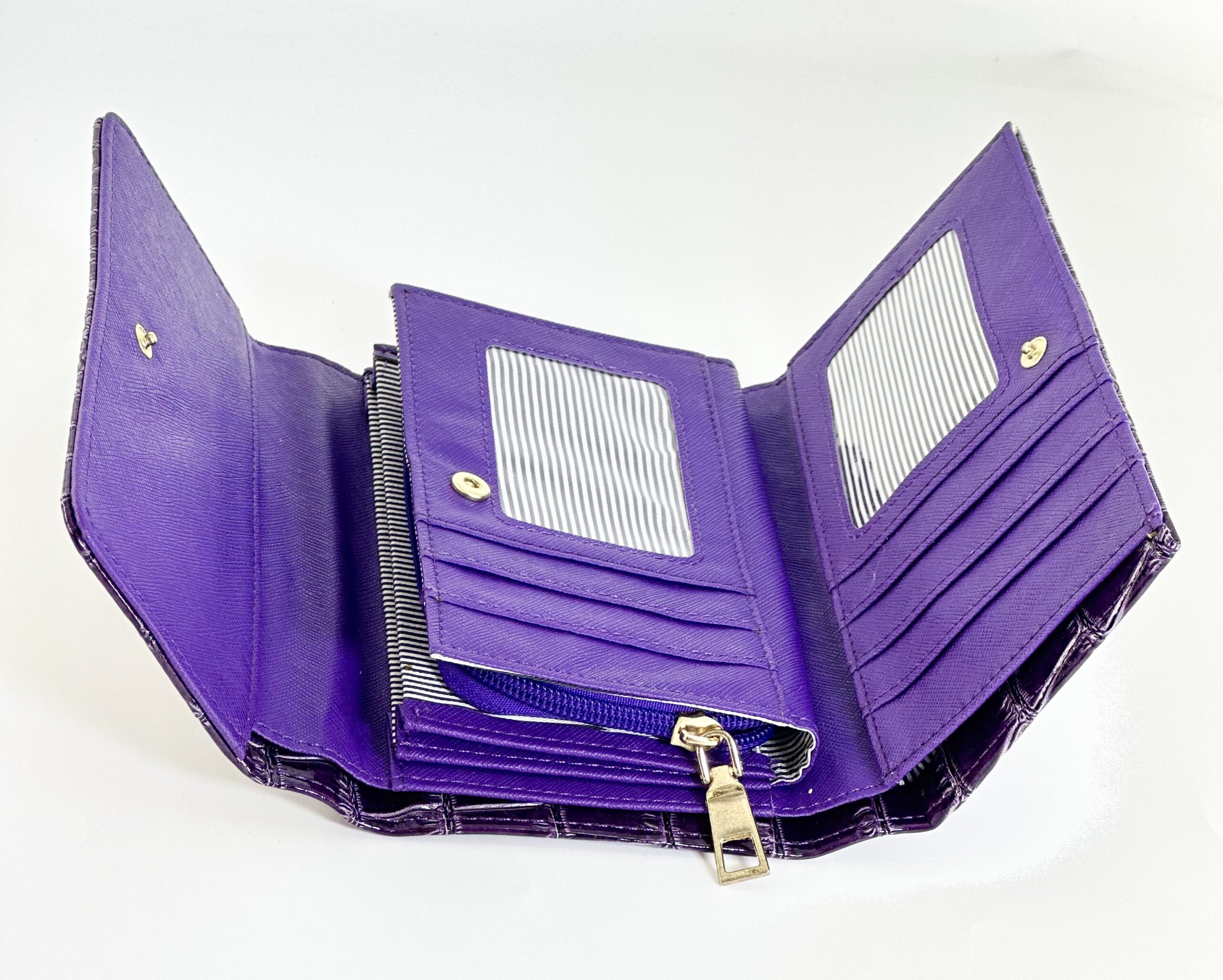 Το εσωτερικό του φαίνεται ευρύχωρο, με πολλαπλές θήκες για κάρτες, χαρτονομίσματα και κέρματα.
