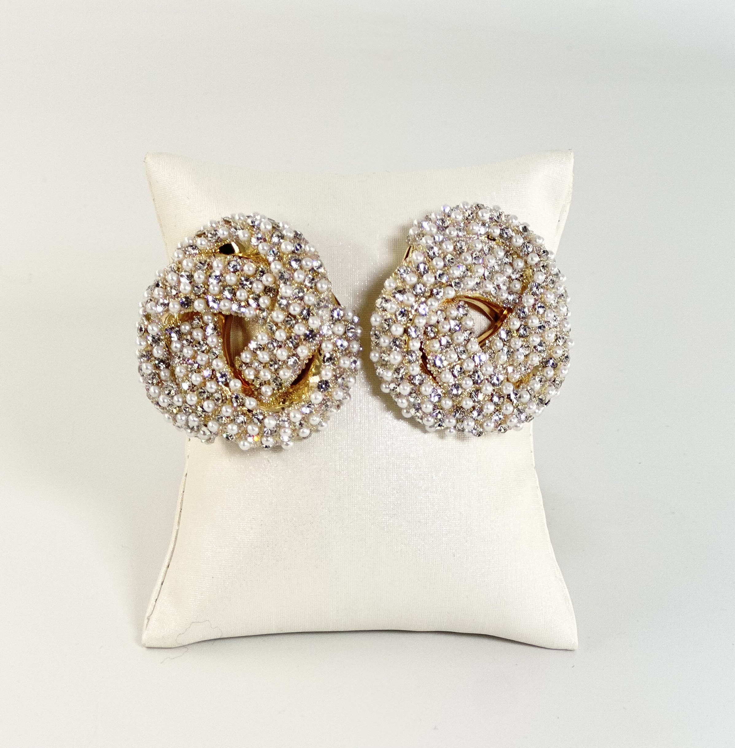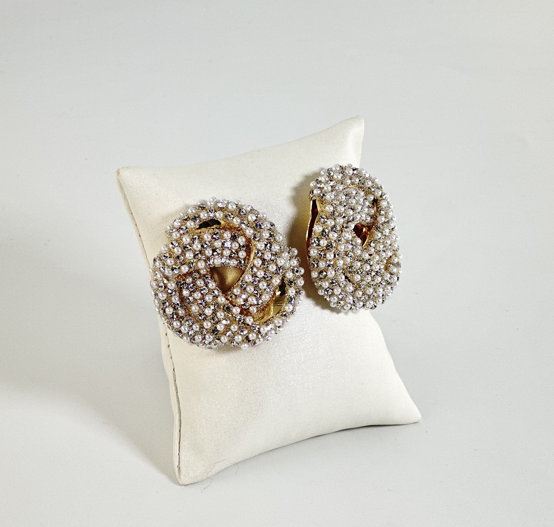 Πρόκειται για στρογγυλό, καρφωτό σκουλαρίκι με περίτεχνη, στριφογυριστή φόρμα που δημιουργεί ένα τρισδιάστατο εφέ.