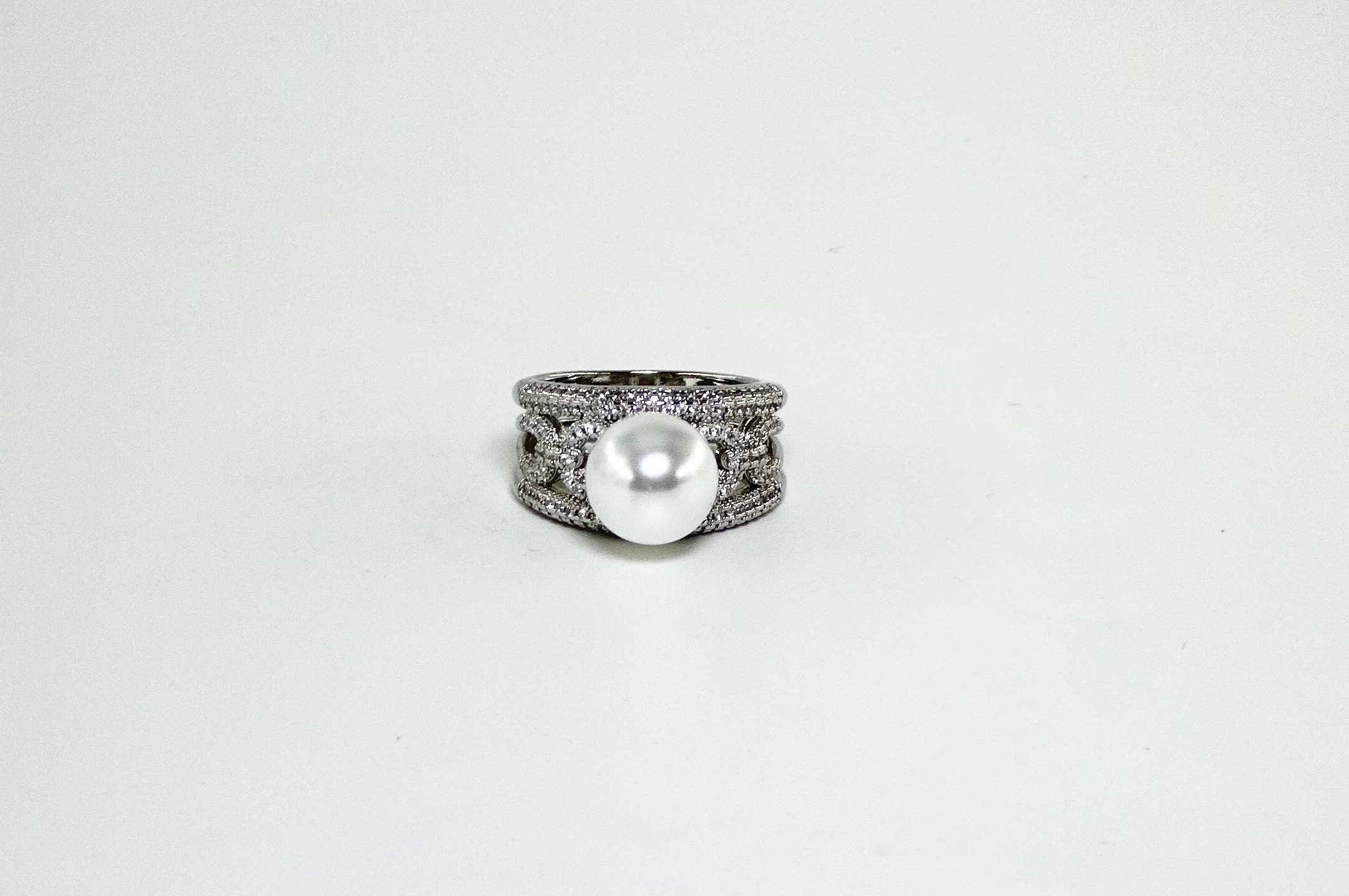 Στο κέντρο δεσπόζει μια μεγάλη λευκή πέρλα,