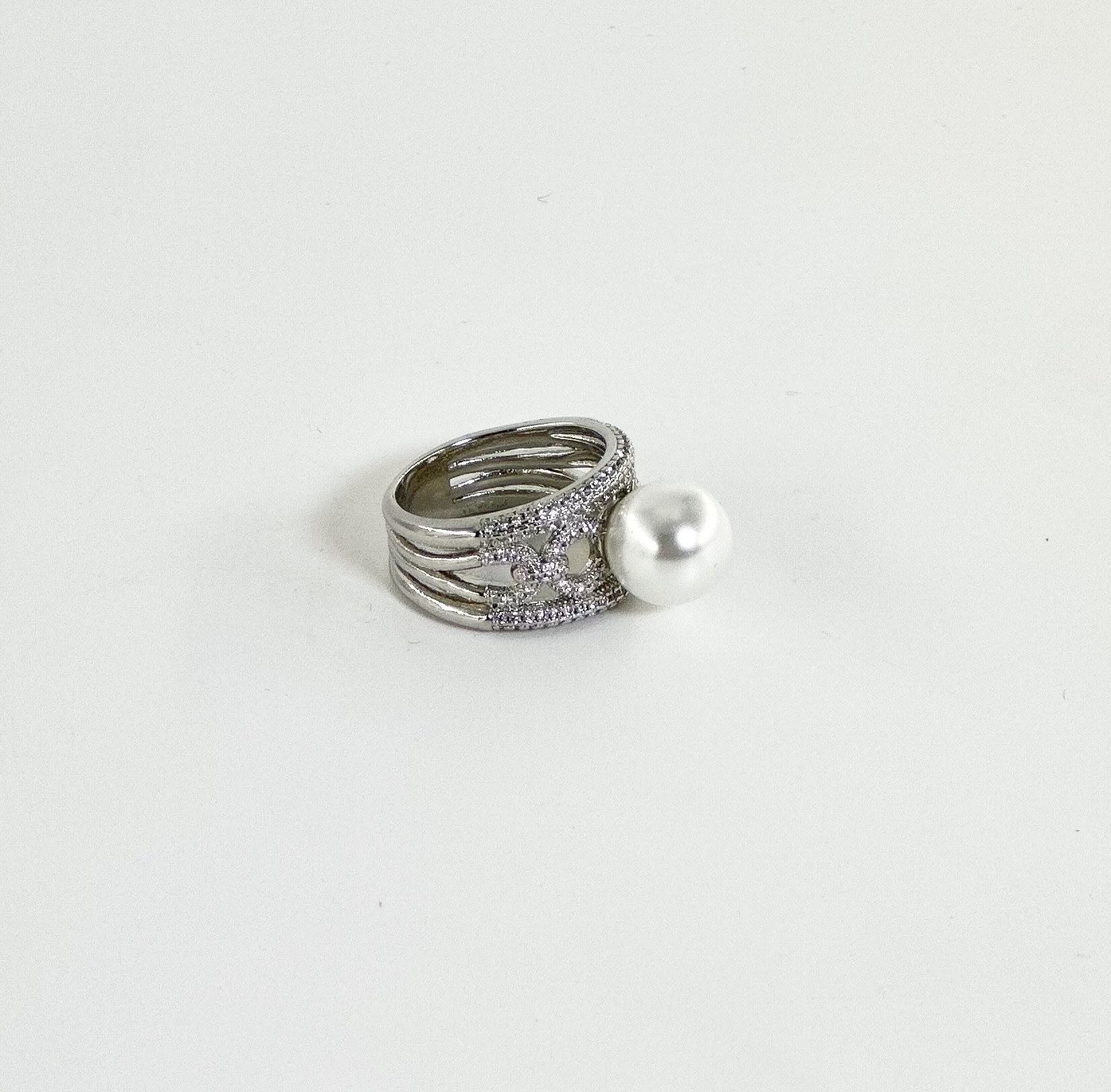 Ατσάλινο ασημί δαχτυλίδι με επιμελημένο φινίρισμα και στρας.