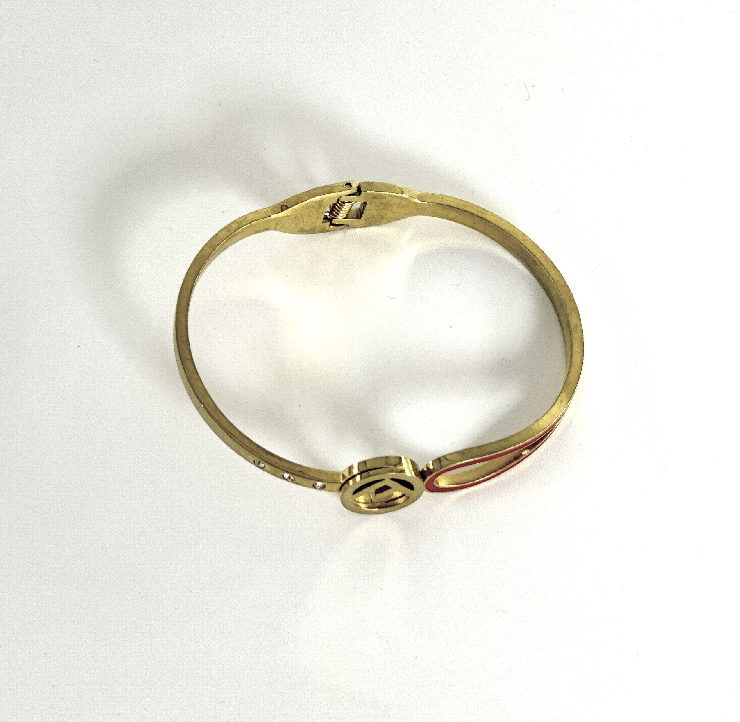 Απόχρωση: Χρυσή χειροπέδα/βραχιόλι ανοιγώμενο με στρας και κόκκινες λεπτομέρειες