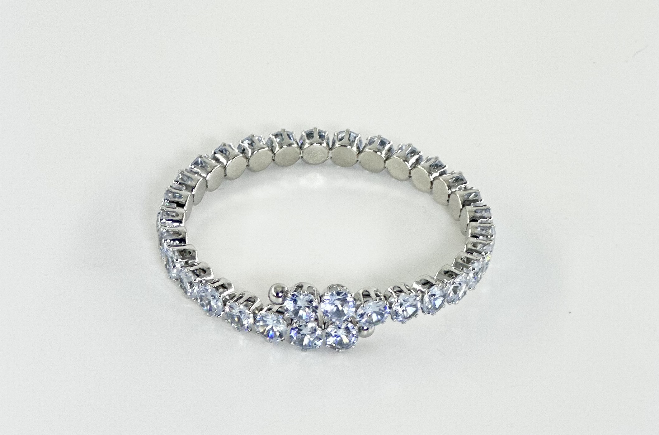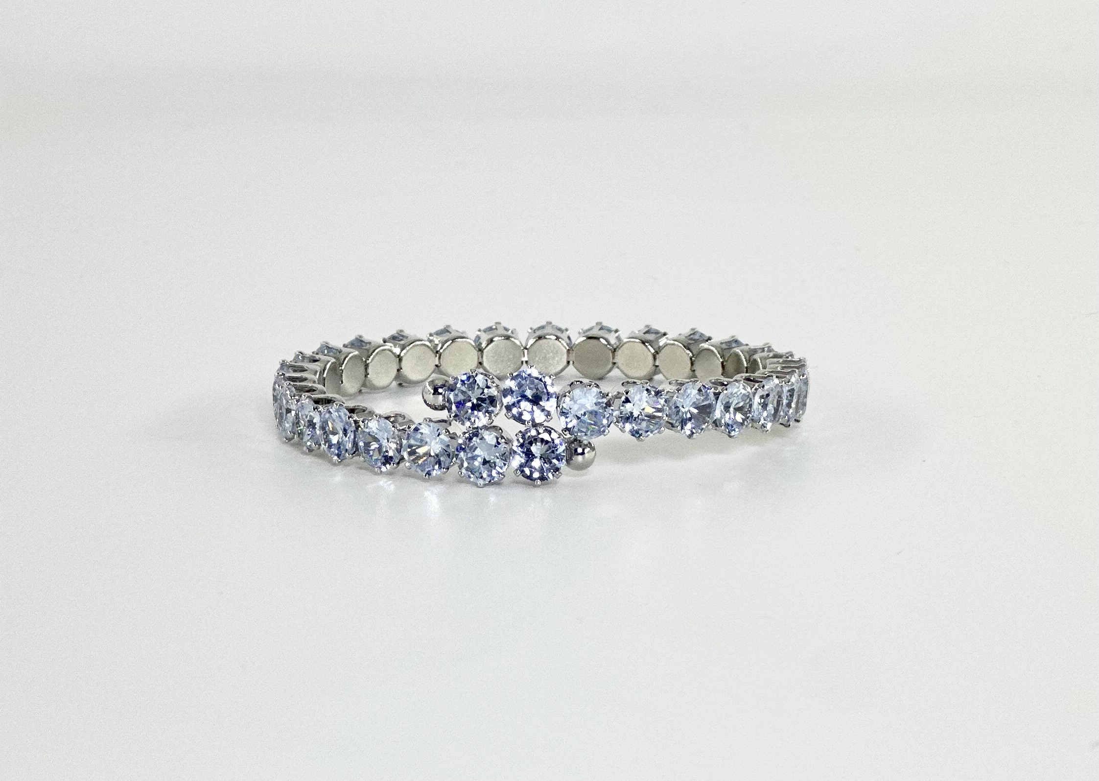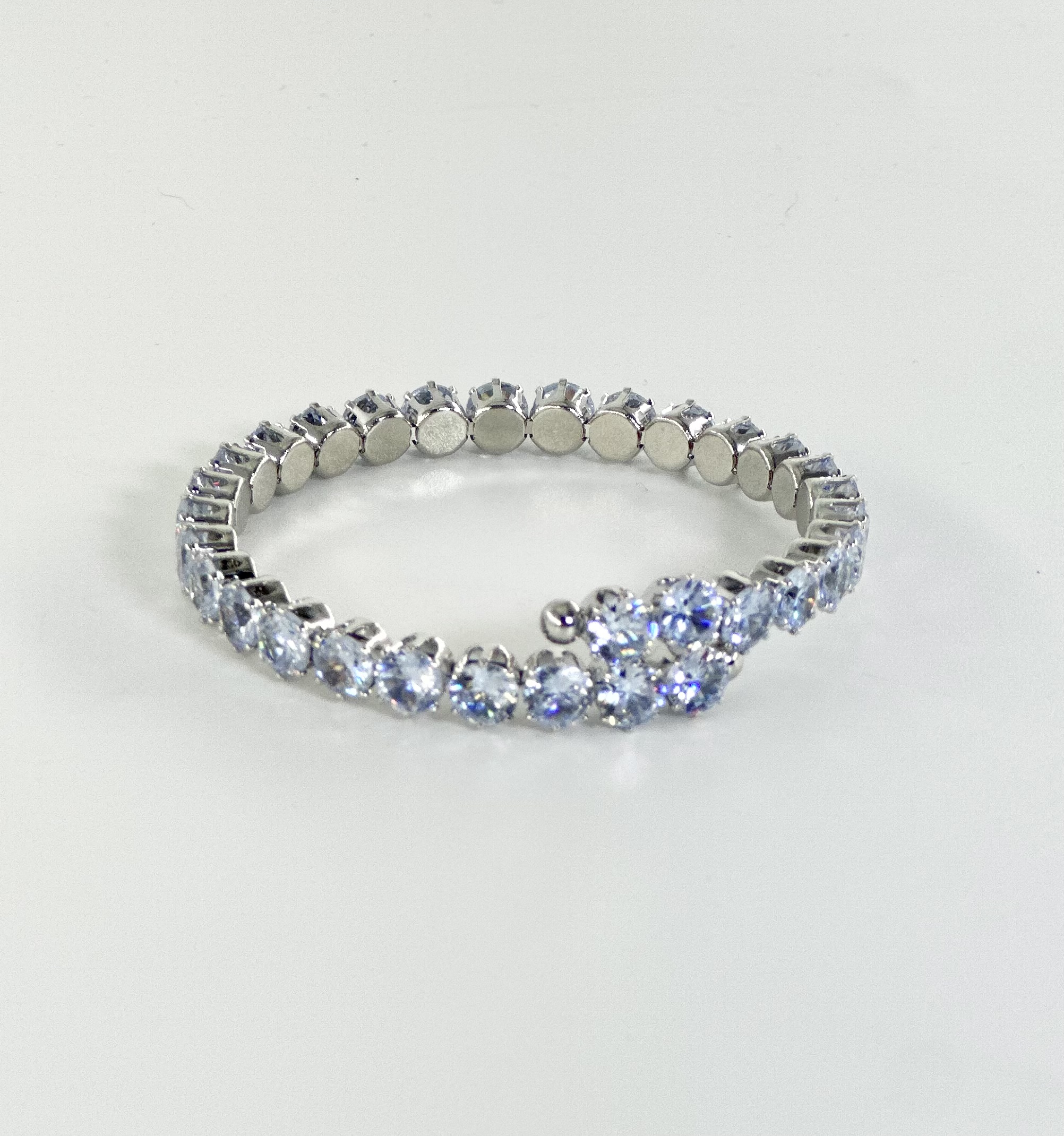 Ελαστικό και εύκαμπτο βραχιόλι με παράλληλες σειρές λευκών στρόγγυλων κρυστάλλων και μικρά ασημί στοιχεία ανάμεσά τους
